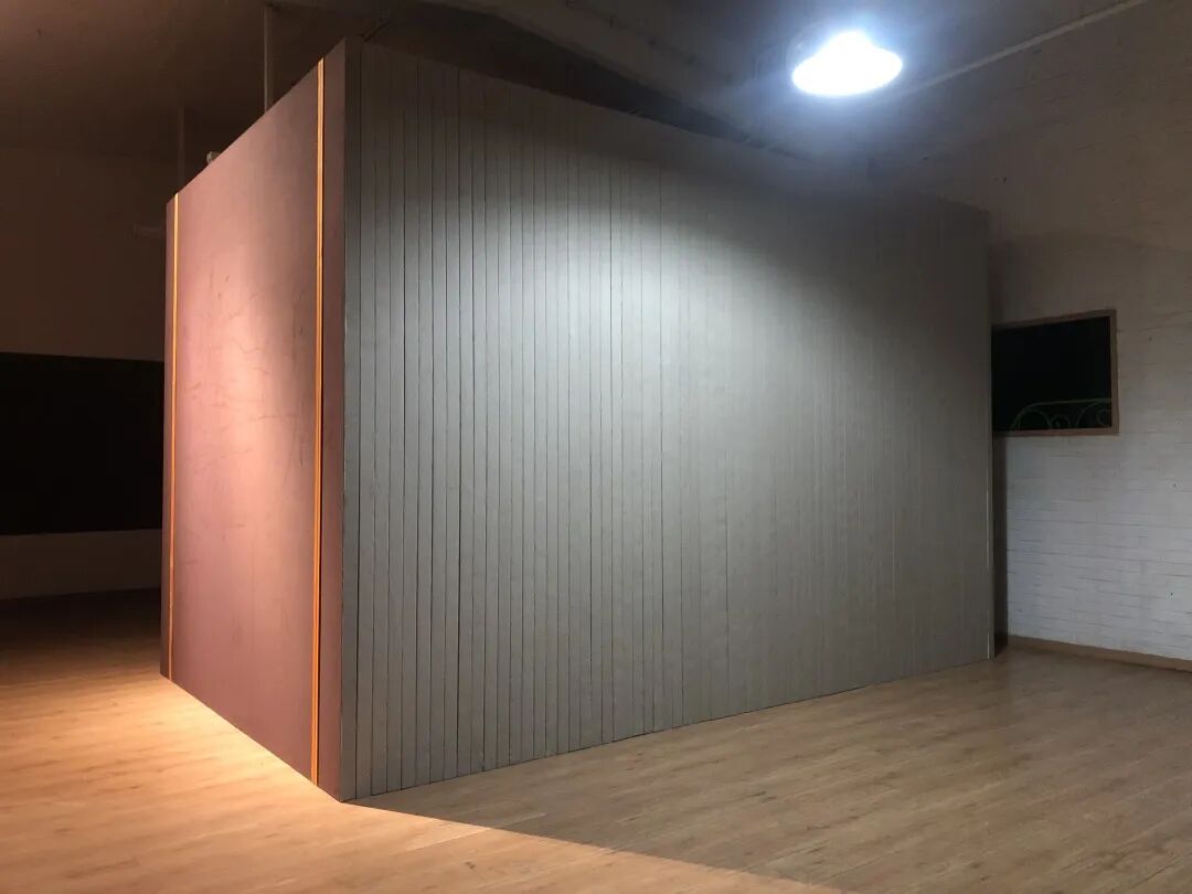 展览现场近似微型迷宫,西岸美术馆展厅0被艺术家用复杂多源的材料区隔,观众因循声音、视像、体感、尺度、光、影等等的驱动,或主观或被动的前行。