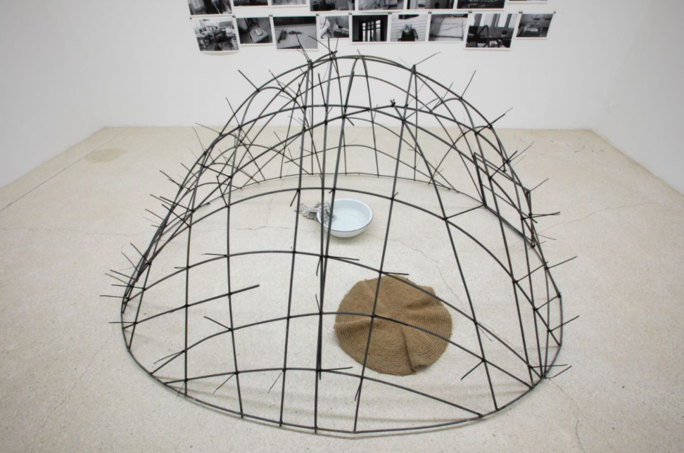 ▲胡向前 《庇护所》 行为现场 表演者为杂技演员