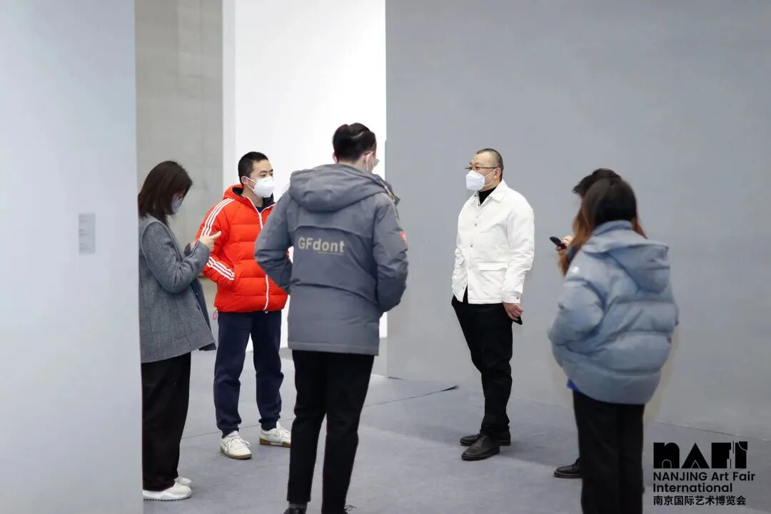 ▲艺术家臧坤坤、NAFI南京国际艺术博览会艺术总顾问朱朱在现场