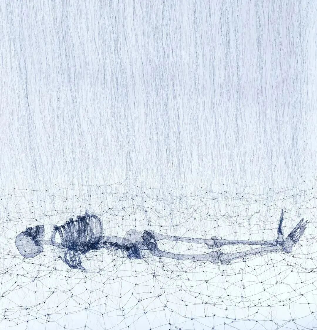 平铺于几乎整个展厅的“床单”可供观者任意踩踏、行走,甚至躺卧,对私人化与公众化之间的界限和关系转化进行了直截了当式的问题呈现。带有人文温度的织物在转化为代表工业文明的冰冷拼装之后,在手工感被削弱的过程中,那些镌刻在民间文化中的记忆,与历史中的浪漫人文痕迹也逐渐被消解,并置到了一种更为规范化和机械化的现代文明之中。