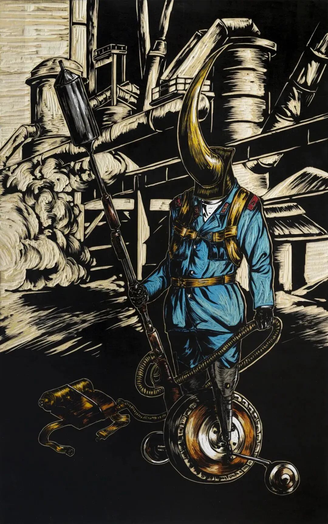 近年来,艺术家笔下的图像所涉猎的范围变得更为广泛——早期作品中秉承的“视觉奇遇”让位于艺术家对现实、对生命、对能量世界的哲学追问,并将个人化的思考融汇到宏大的、史诗般的场景中,试图在可观看的图像与抽象的本质之间找到连接的桥梁,赋予内在的逻辑。最终,对现实生活的拷问与图像的逻辑并重,而对思想观念与精神世界的表达成为了艺术家创作最内在的动力。