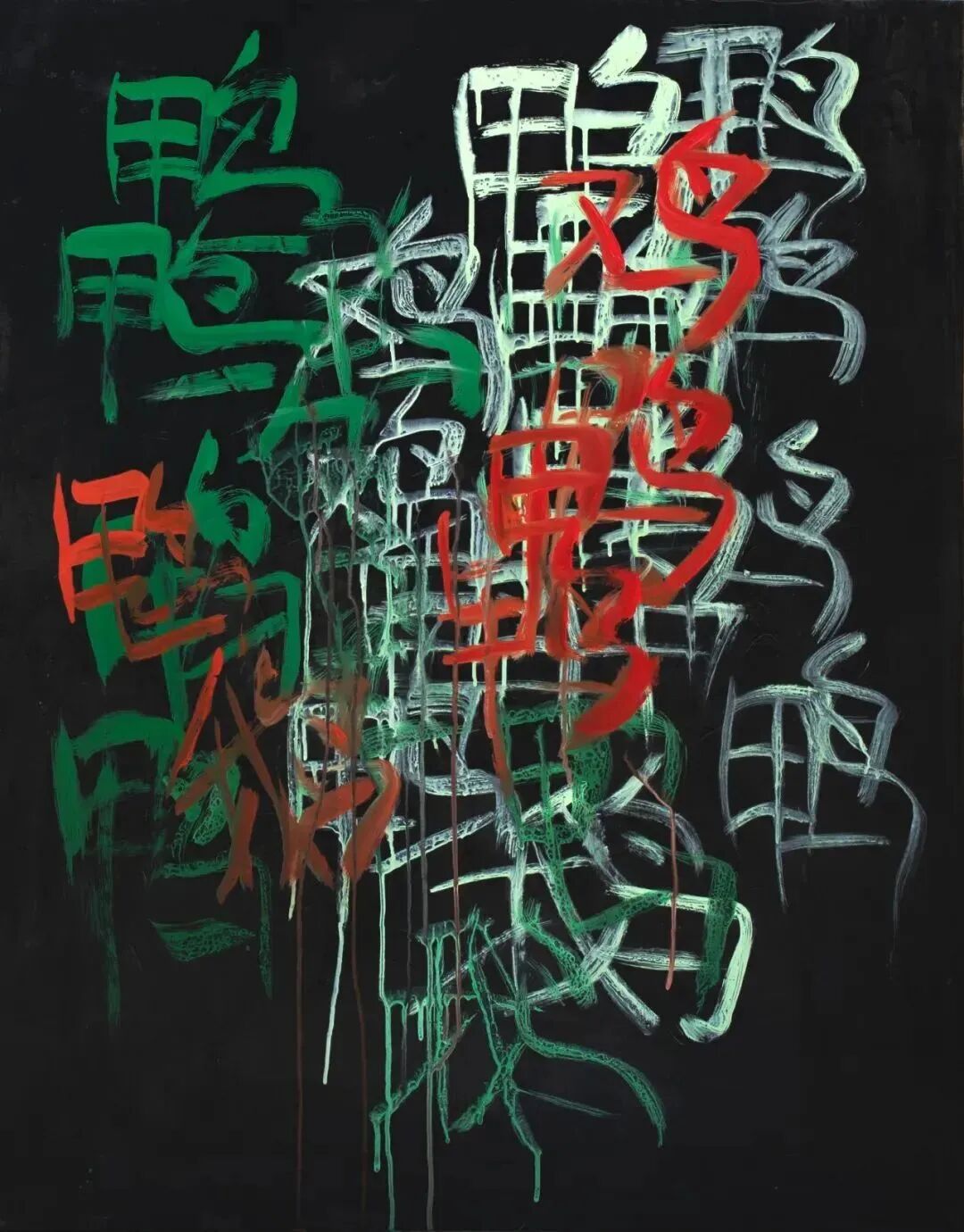 《角斗场》系列绘画延续并深化了艺术家早先对于身体作为心理、情感、精神状况投射的讨论,更如其标题所提示的那样,将身体作为与他者或自身于外在或内在对抗性的场域。作品中的身体愈发抽象,甚至曾经以骨架作为结构的方式也不再显见,取而代之的是以流淌的曲线塑造而成的肉体“团块”。“团块”作为画面中的基本单元与结构,其边缘色彩差异带来分明的界限,多变且时常相互抵牾的线条走势带来对抗与分裂,而自然流淌或相互遮蔽的颜料或缠斗或融合。由此,原本静止的画面也获得了强烈的动态,将艺术家创作时的身心状态展露无遗。