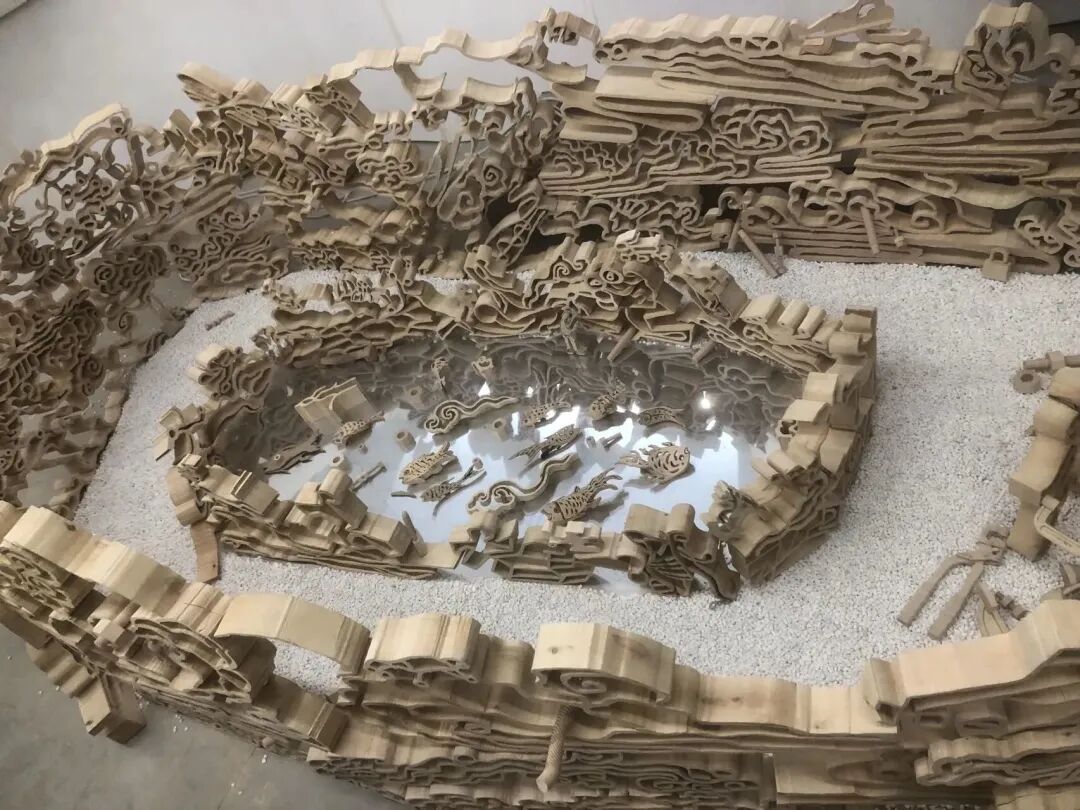 从赵孟頫的《不断云》有太多联想,我要做组作品奉献给大众。但这艰难时期我不想用太沉重方式表达,年轻时在工厂做木横工,对木头情有独钟。人们儿时观赏观赏云彩晚霞有种种想想,那时楼没那么高.也没手机,举头常能看到变幻无穷的云彩。从中仿佛可看到神仙、小鸟、野猪、鱼儿等等。