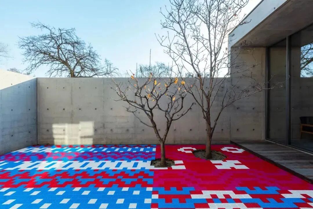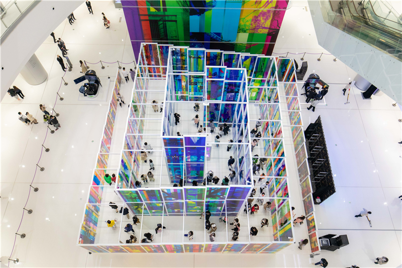 展厅中的作品并非整件作品的全部,它可以随着空间与环境的变化而无限延伸。这种类似像素点一样的图像可以不断地蔓延与生长,引发了我们对于一种文化、一段劳作历史在不同文化环境中的适配性程度的思考。赵要说:“这种图案重新被放回到城市文化环境中,与受到城市现代性审美的人们会产生一种特殊的关系。”而这种关系究竟是什么,在不断变化的环境与时代背景中,也许并没有一个单一指向的答案。