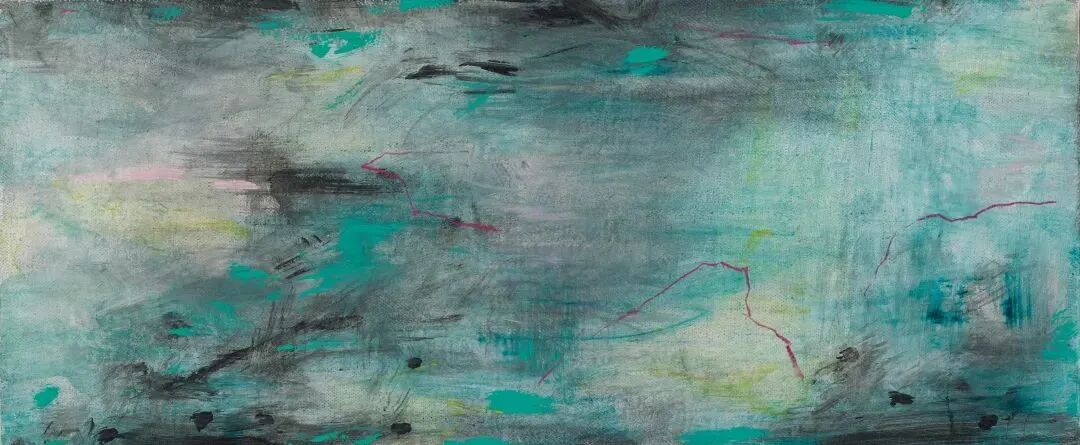 在冯良鸿的自述中,反复谈到了“空”的概念,画的是空的东西,画一块空气,一种放空的作画状态,类似禅定和冥想的经验,应无所住而生其心,安静耐心地感受并且等待,直到笔意的显现,纷乱的现实变成单纯清晰的可观想形象,由笔意变成笔触,或排笔涂刷、或刮擦勾抹,或滴溅泼洒,泼洒与笔触相接,笔笔相生,阴阳相间,或疾或徐,每一笔都是下一笔的缘起,起心动念,在自由和秩序的角力抗衡中生长,看似全在偶发和即兴的夹缝间,却又倾注了画家高度的控制和理性,谋篇布局,结构经营。在这个过程中,心念转化为了可视的图像,而在瞬息万变间不经意溜走而无从捕获的遗憾,或许成为下一次绘画的动因。