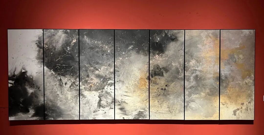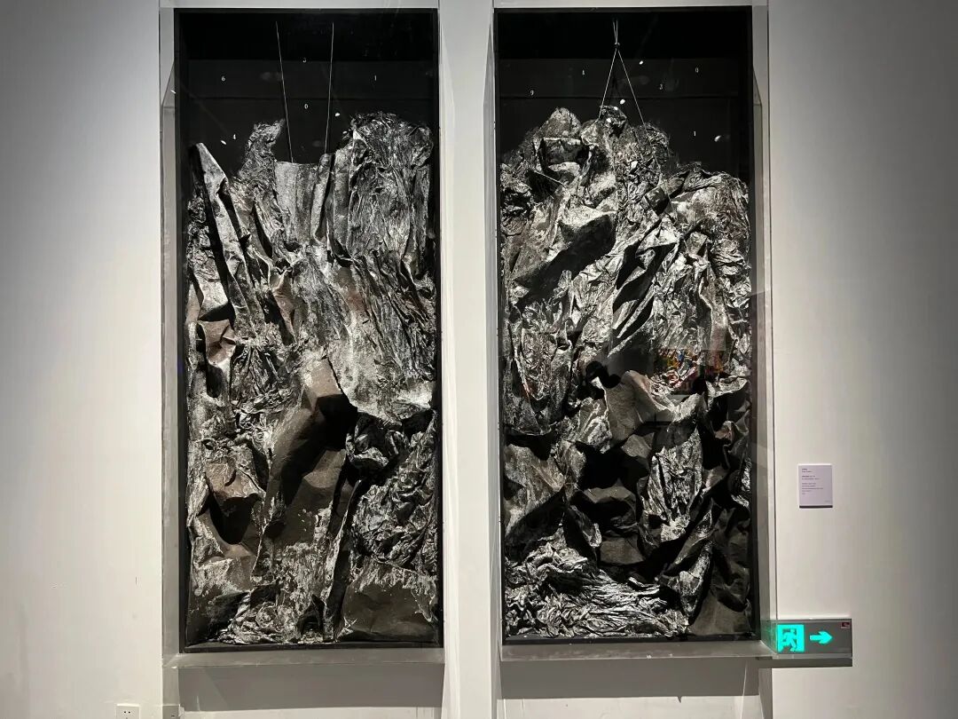 ▲李皓《尘 No.04) 纸本综合村料 180x70cm X7 2020年