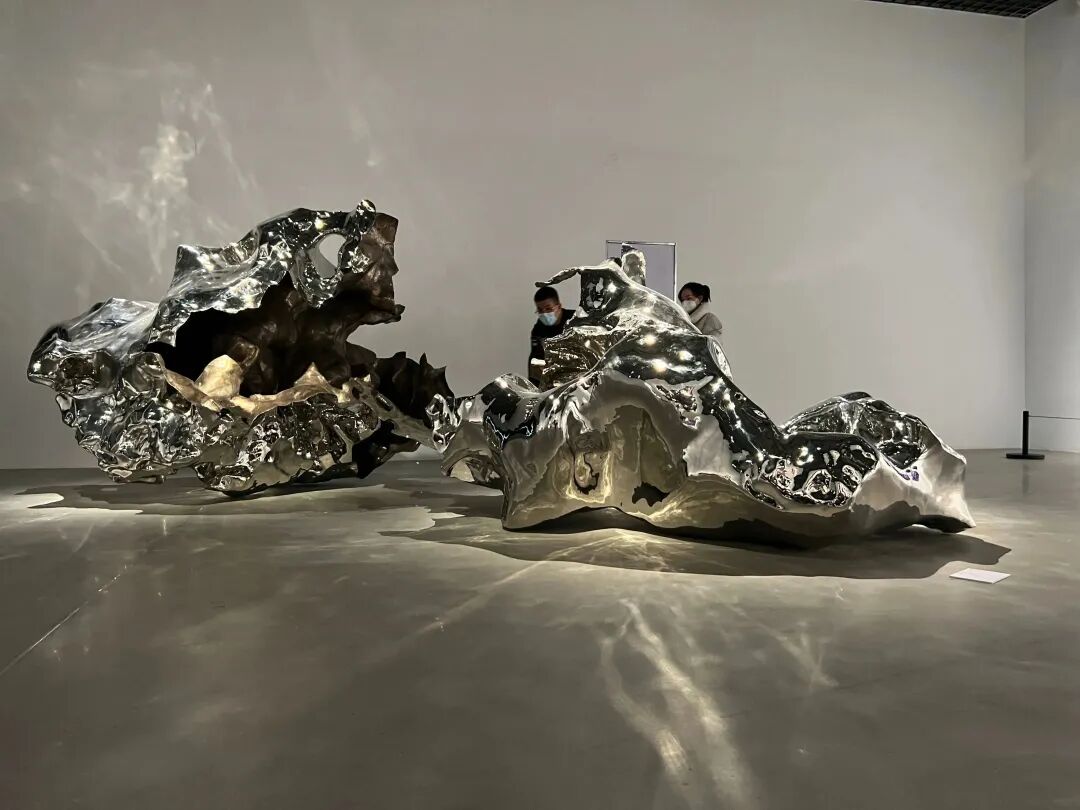 进入展览的主会场就会首先看到此次参展艺术家王郁洋的大型装置作品《人造月》和宋冬&尹秀珍的大型装置 《筷道:18岁》 的作品。