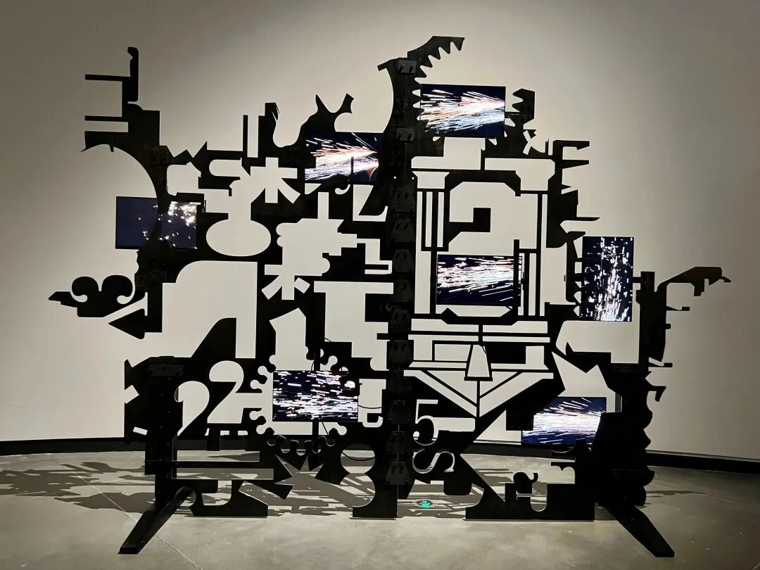 暗调的展厅内,“照耀你”系列的影像耀目的闪烁,与废钢铁、铁渣之间形成紧张、危险的氛围,也在这里展开对现实问题的碰撞。
