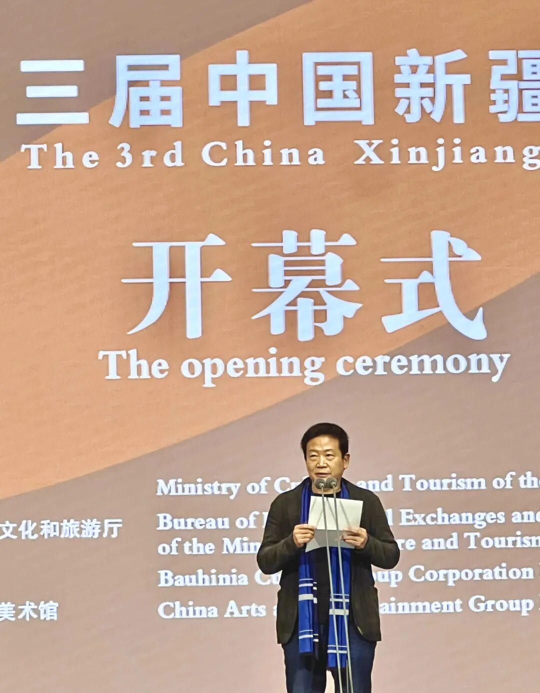 ▲“第三届中国新疆国际艺术双年展”总策展人张子康致辞