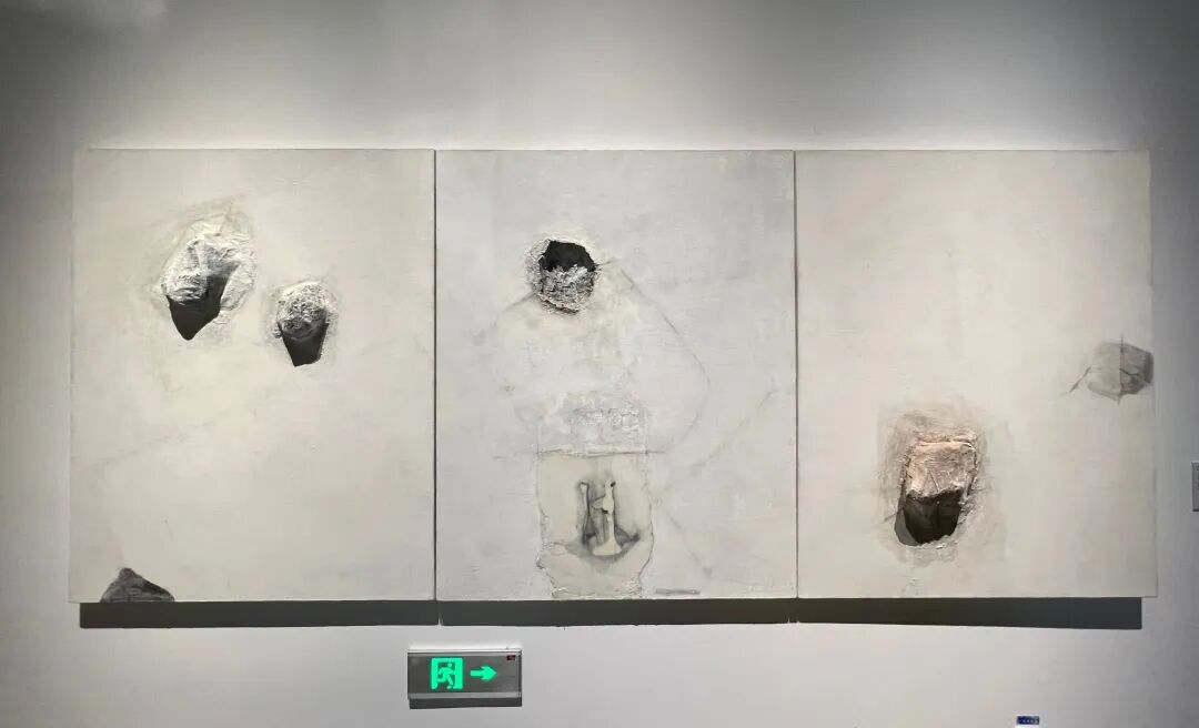 ▲王焕青 《无名》之一、二 复合媒介 150X120cmX 3 2021