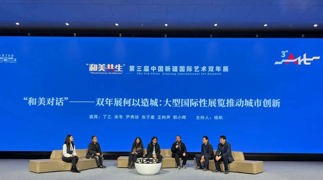 在开幕式结束后,举办了第三届中国新疆国际艺术双年展“和美对话”系列文化沙龙,对话嘉宾从各自与新疆的切身体验,表达了关于艺术与科技,艺术与城市,艺术与文化创新,双年展对城市建设的积极作用等等视角展开讨论对话。