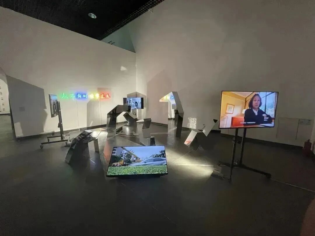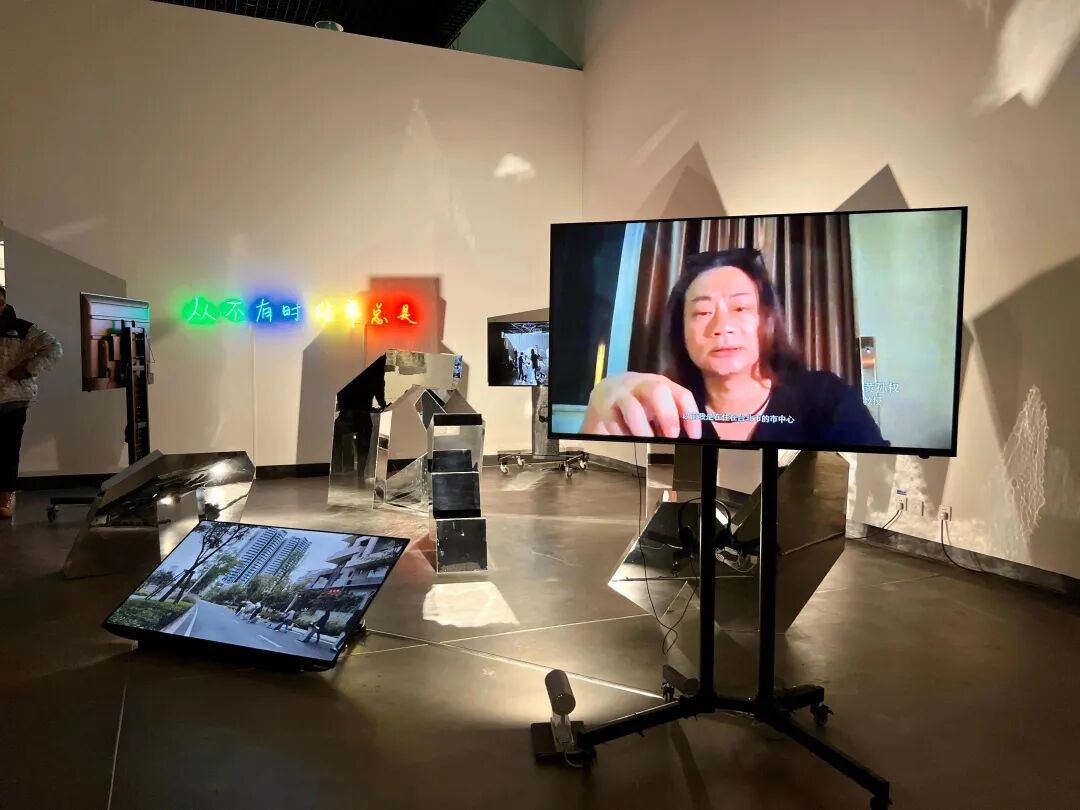 四频录像 & 声音装置 霓虹灯管,镜面抽象雕塑