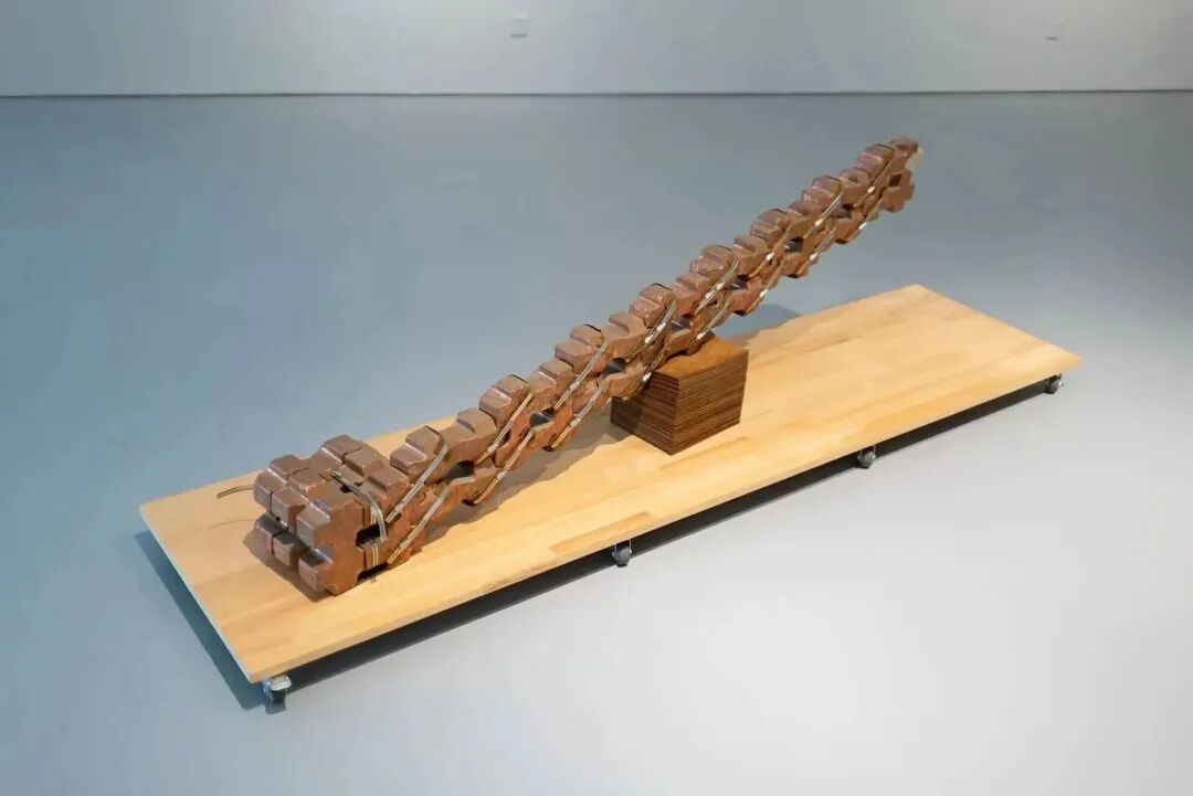 从现场艺术家宋冬和尹秀珍的介绍中了解到,《筷道18岁》是宋冬和尹秀珍在2019年用他们创造的“筷道”合作方式创作的装置作品。“筷道”(The Way of Chopsticks)是宋冬和尹秀珍在2001年创造的一种保持独立的合作方式。“筷道”是一种建立在筷子本质上的合作方式。在双方商定的同一尺寸和主题下,合作双方相互保密,独立完成各自的部分,最终将成果并置,形成不可分的一件作品。筷道是建立在合作双方互信,平等和独立的基础上。互信是筷道的根本,平等独立是筷道的灵魂。