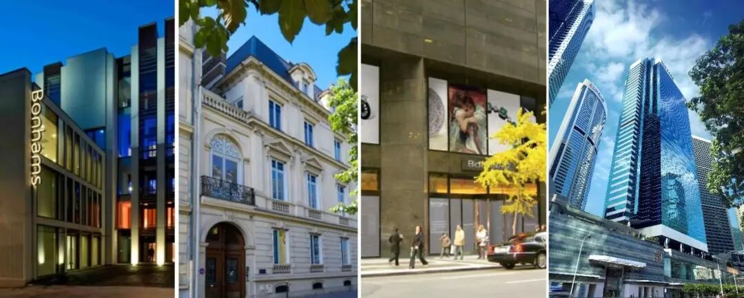 ▲左起:伦敦邦瀚斯新邦德街总部、巴黎邦瀚斯 Cornette de Saint Cyr、纽约邦瀚斯、香港邦瀚斯