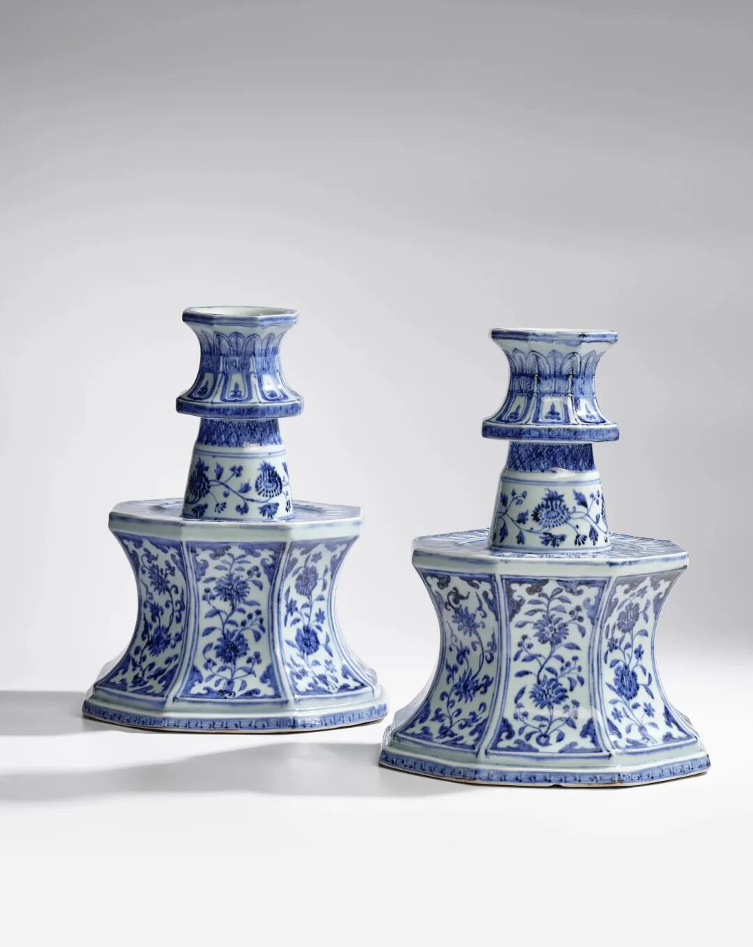 明永乐青花缠枝花卉八方烛台一对