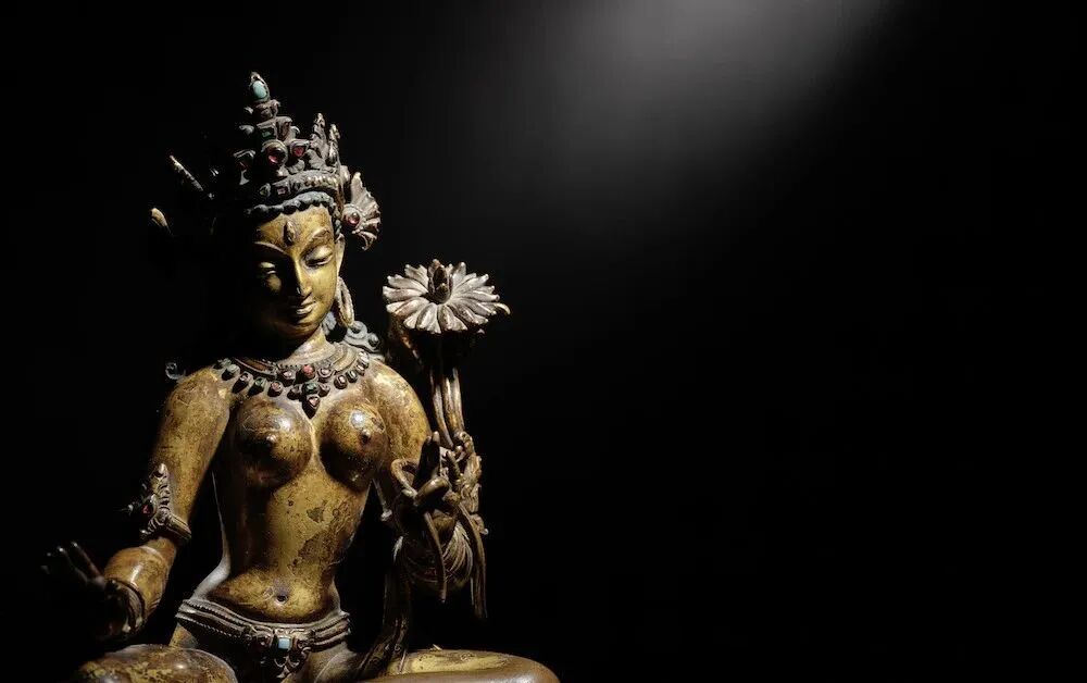 铜鎏金绿度母像