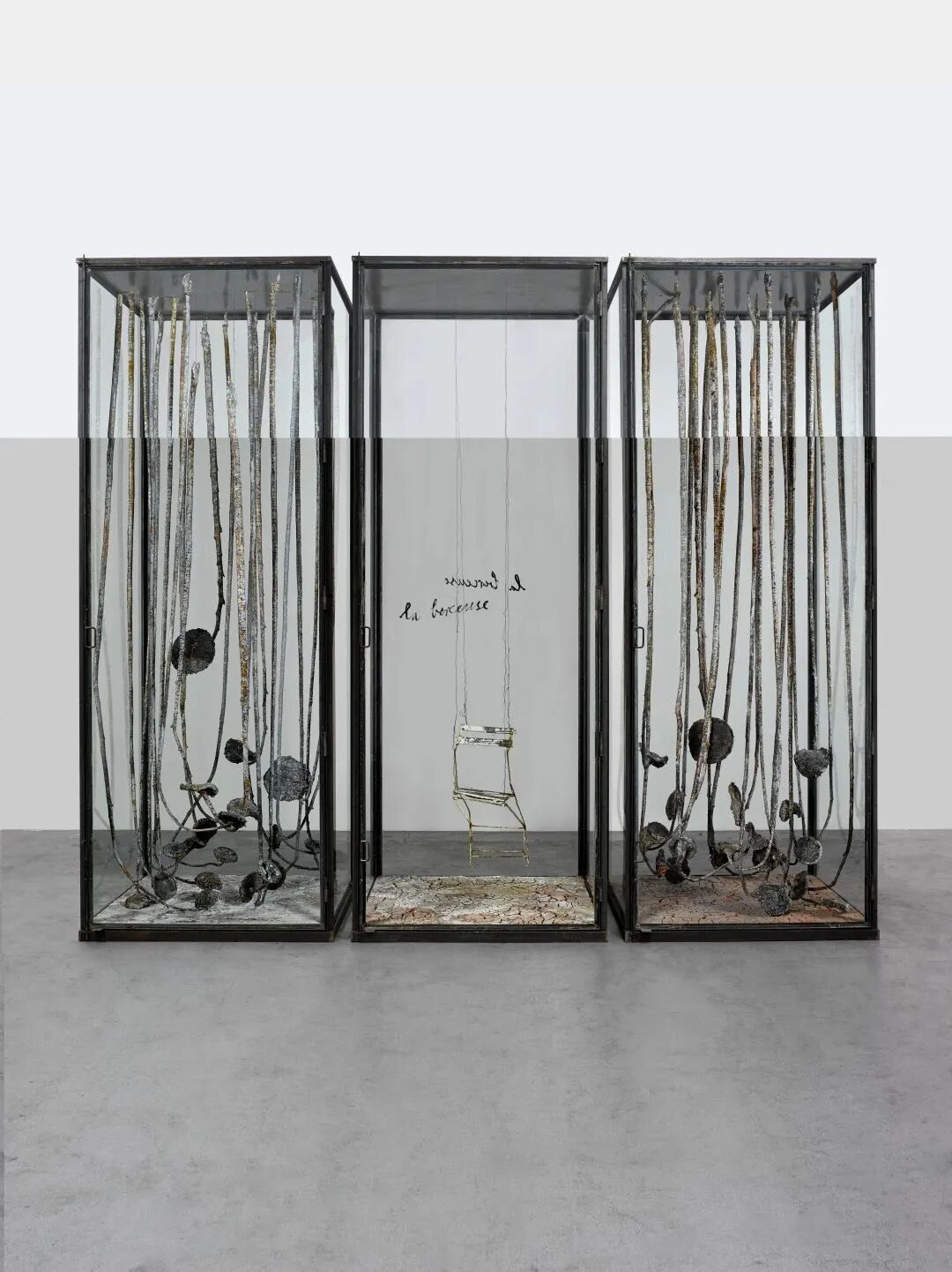 ▲《摇篮曲(致敬梵高)》 _ 安塞姆·基弗Anselm Kiefer _ 装置:有椅子和向日葵的玻璃橱窗 _ 450 x 150 x 150 cm x 3 _ 2010