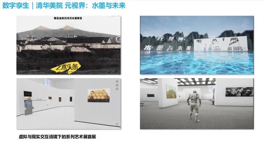 与清华美术学院合作举办的“元视界:水墨与未来”,是雅昌虚拟与现实交互语境下的系列艺术展首展。艺术水墨作品与元宇宙空间的结合,借助空间营造的方式意境再现,体验“超世界”中的水墨之美,艺术作品数字化、虚拟化媒介转呈,从虚拟视觉沉浸式的映射和交互视界中,用数字技术去探讨更多媒介、展陈面向未来的多种可能性。