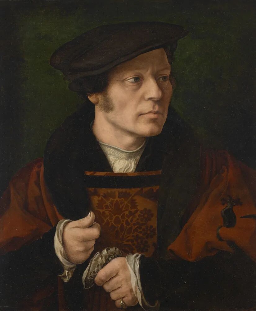 乔斯·范·克利夫《手持手套、身着红丝绒长袍的男子半身肖像》以75万美元落槌,含佣金以94.5万美元略低于最低估价成交。