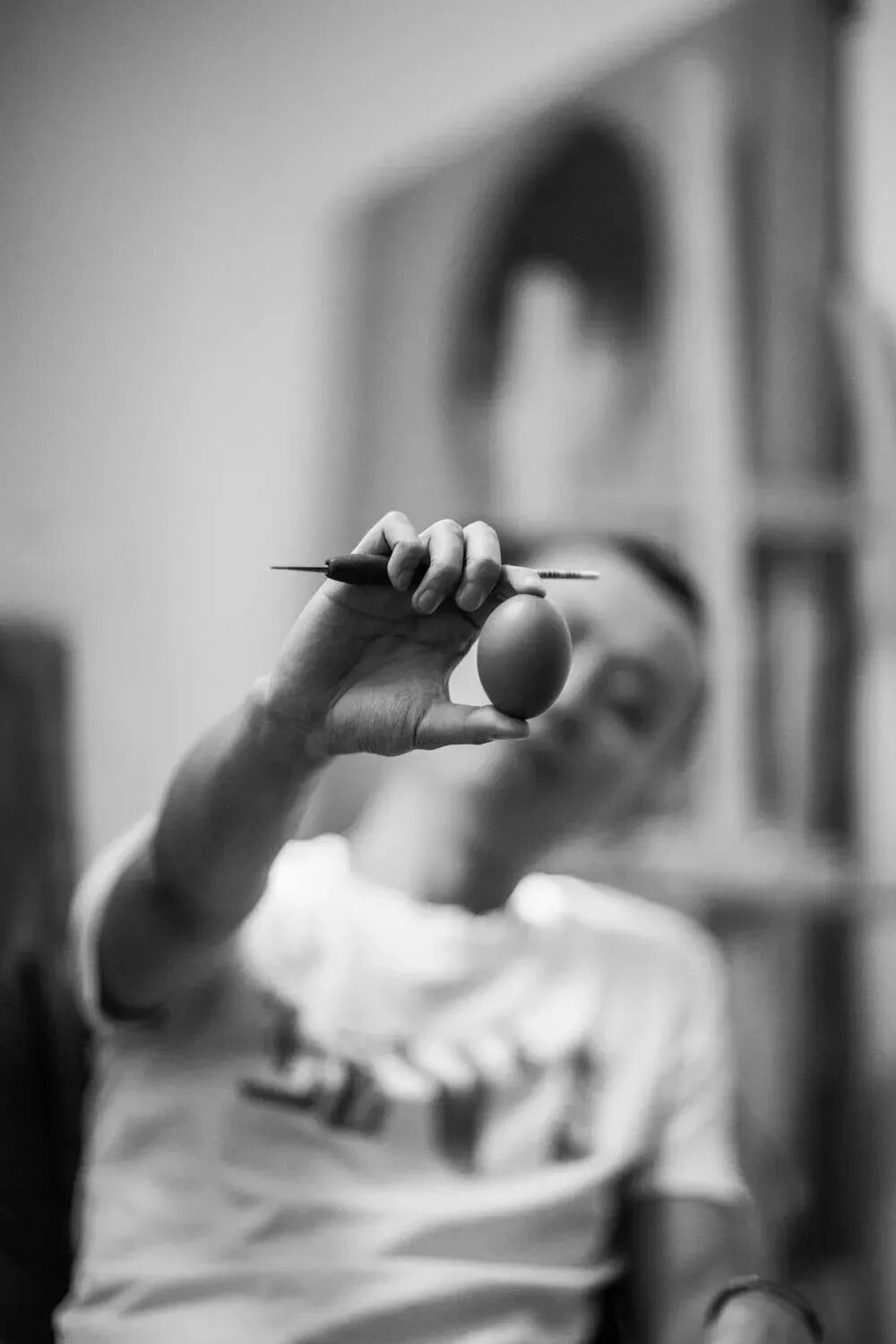 多年的创作经历中,逐渐的意识到我不是单纯的在跟我的画面发生联系。而是我在跟身边的画笔,颜料,画板,亚麻布,木材,纸张,等等组成我作品的因素在发生联系。从选择木材,制作画板,到手磨天然矿物颜料,这些媒材有着众多生灵的意识与精神。这让我意识到最后的作品不是只由我一个人完成的,而是整个文明趋势的结果。而我在面对画布的时候那种万物由我驱使,随心所欲的创作情绪逐渐消失。进而把我的意识放在创作过程的次要地位。使得作品尽可能不受我的干扰自然的形成画面。这促使我在后期创作的一系列坦培拉作品中,有意把画面主体模糊掉。逐渐摸索着这种神秘的,模糊的,又带有一些指向性的表达。