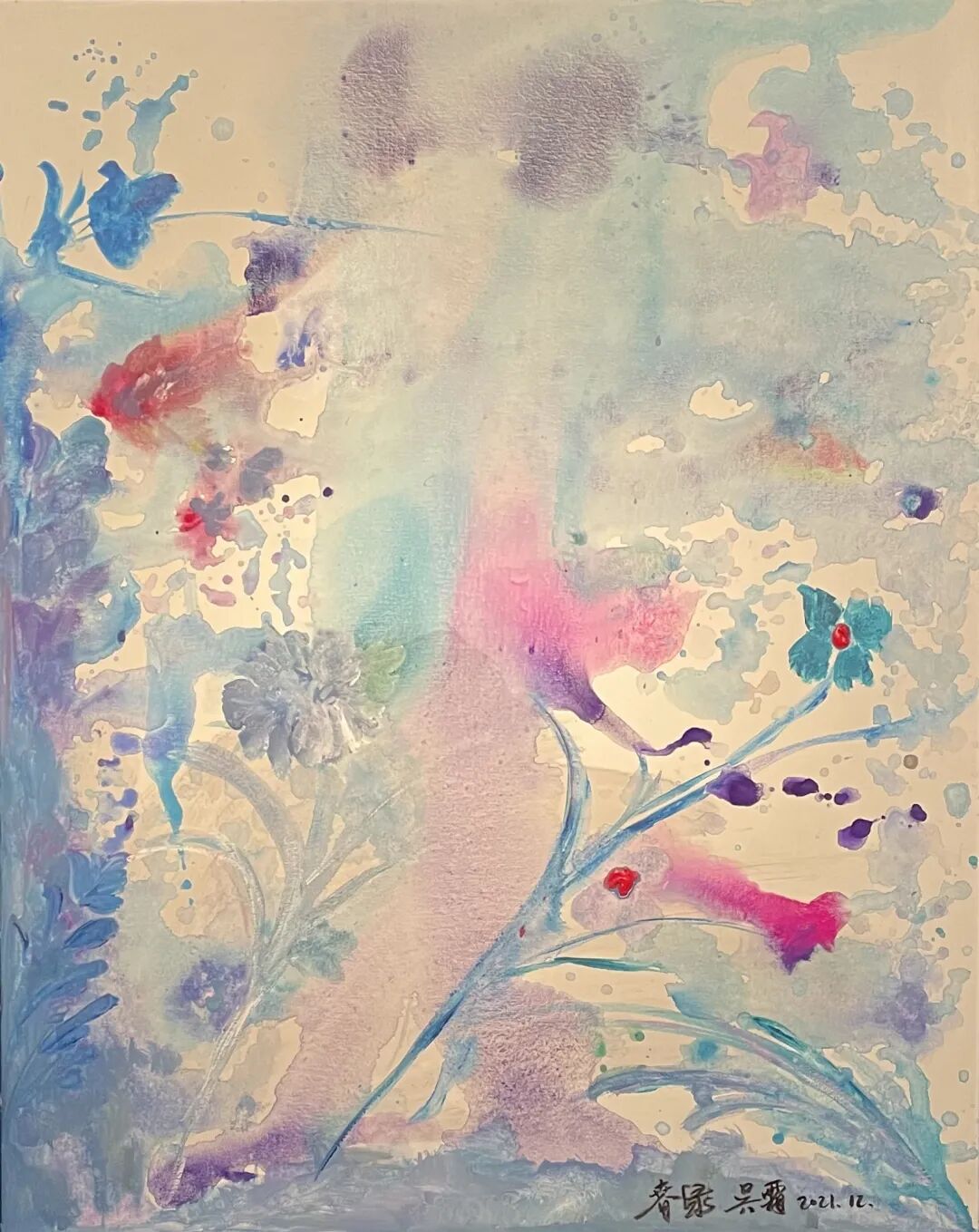 吴霜:我特别喜欢花,花是我生命中不可缺少的一部分。不同的花有不同的美,我希望将家里变成花的世界。此次展出的作品,还没有完完全全把我特别热烈和奔放的爱表达出来。我希望在未来的创作的之路上,能够将花的绚烂,通过大尺幅的作品来表现,将花连成一一片彩色的世界。
