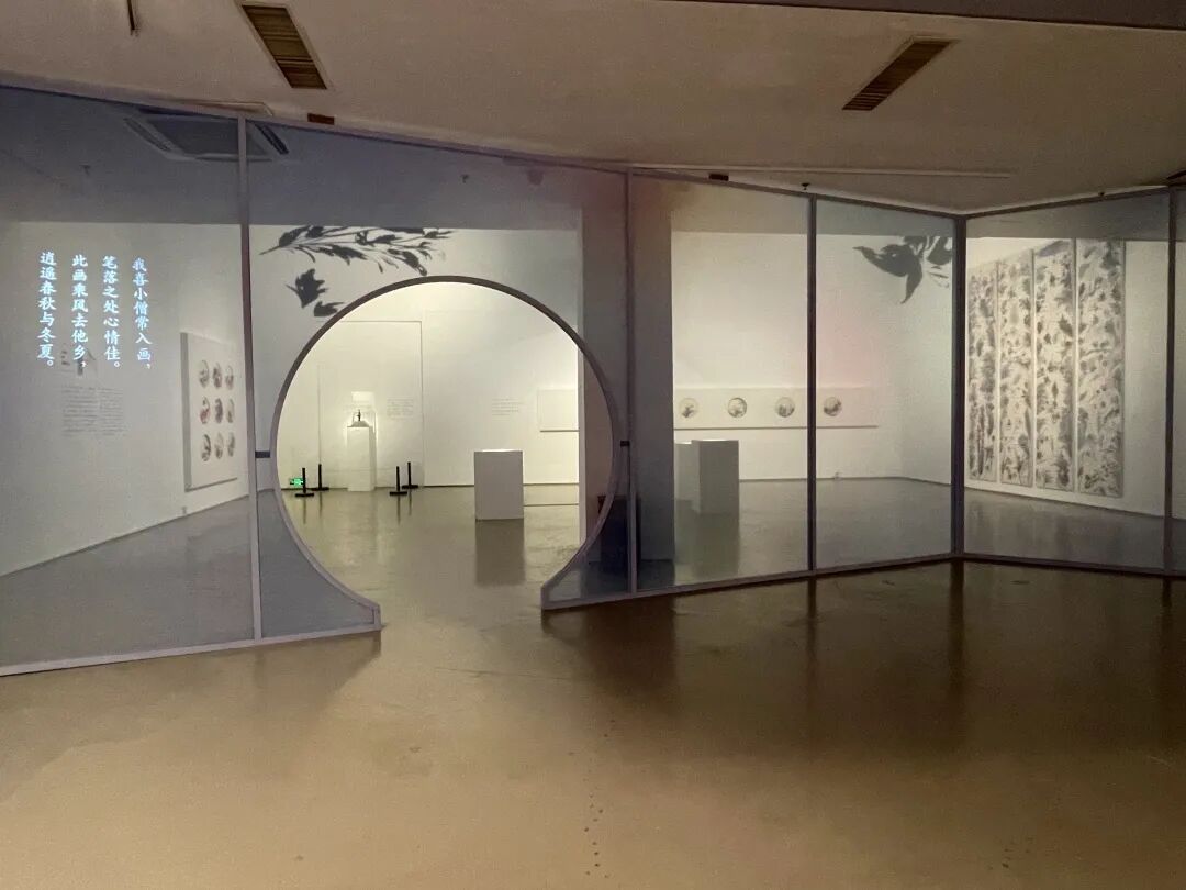 展览分“词中意”“物之相”“一枝春”三个篇章。第一篇章通过诗意般的画面和作品名称,表达人与自然、浪漫与现实、历史与当代、东方与西方文化在不同情境中进行对话的艺术思想。第二篇章以通感的艺术手法,将观者的视觉、听觉、触觉、嗅觉和味觉调动起来,感受蓝色之约,水墨之韵,漫漫之声,以及温柔之花、迷雾之林,花香、色香、墨香、纸香,体悟艺术里的万物之相。第三篇章以展现吴霜笔下的江南景象为主——这里四季百花争妍、热烈芬芳,草木有情、热烈奔放,构成了艺术家永恒的心灵之春。