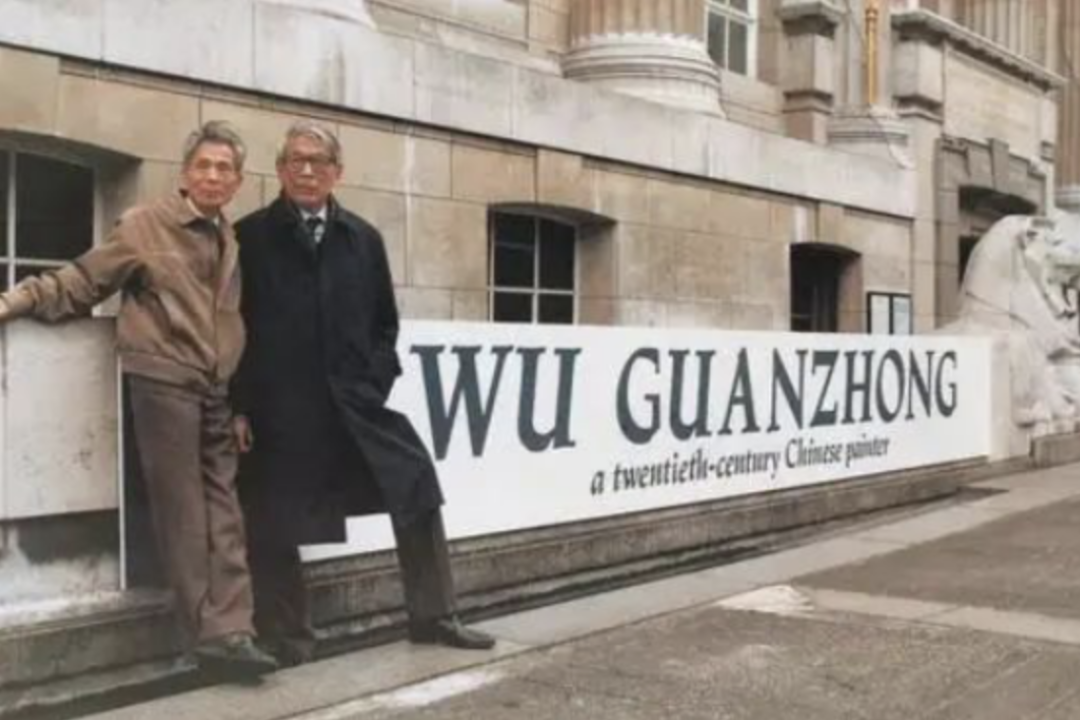 1992年3月,吴冠中与朱德群(右)于大英博物馆
