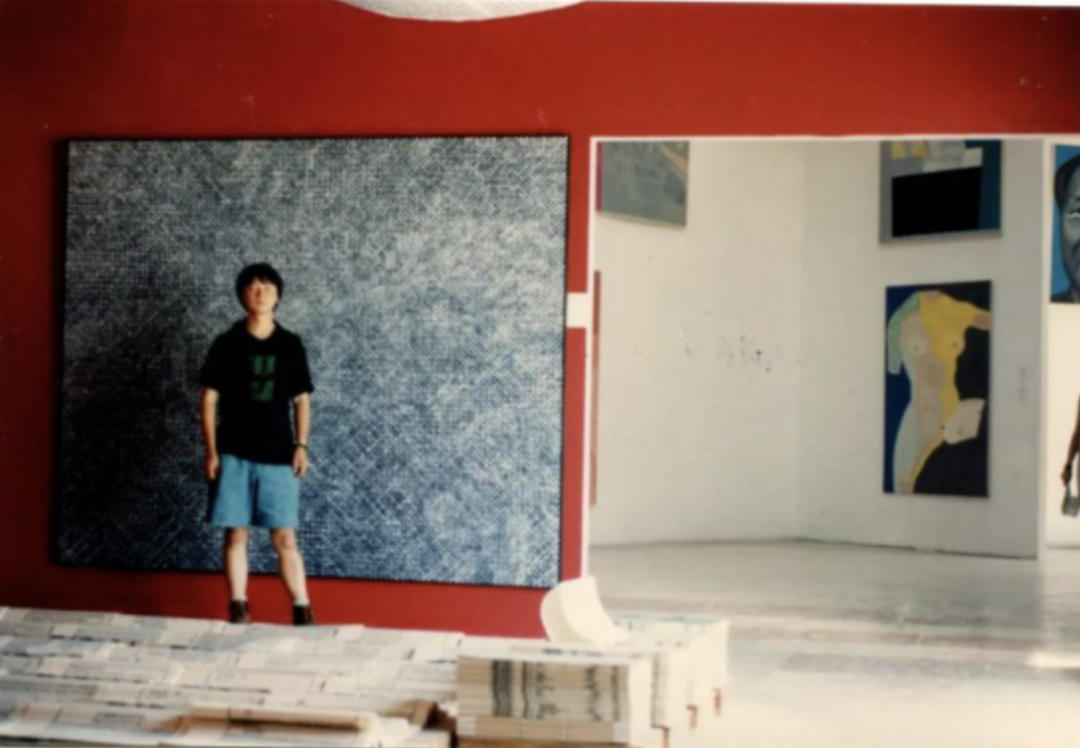 丁乙在威尼斯双年展现场自己的作品面前 1993年