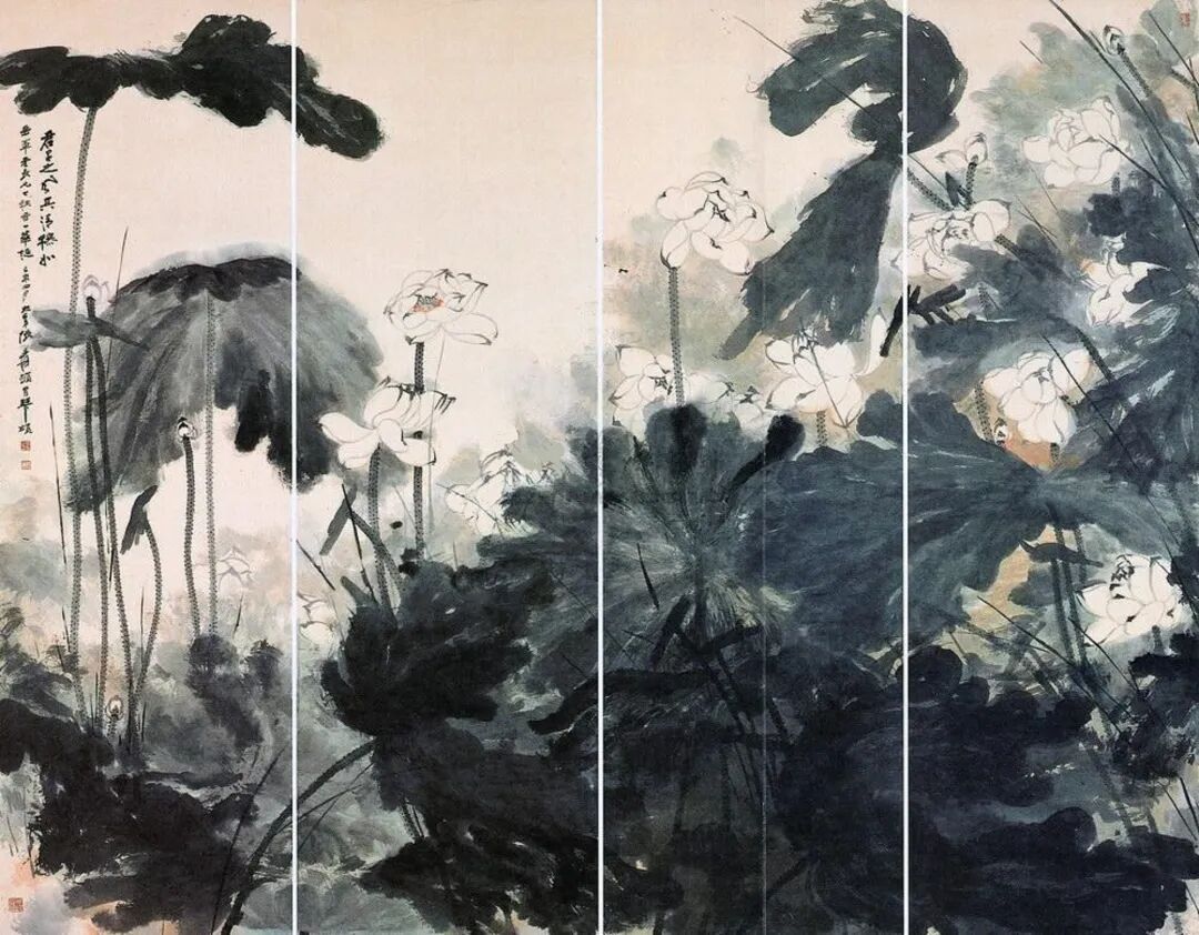 1947年7月,张大千曾与杨孝慈从成都出发,同游西康,写生多幅,并作《西康游记》纪游诗12首,归来后作巨幅荷花《水殿风来暗香满》赠送好友杨孝慈,以表感恩之情。