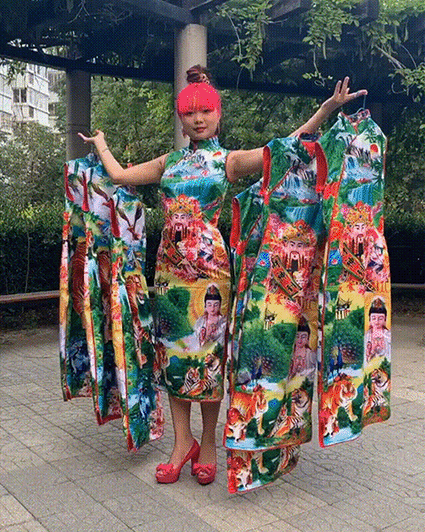 “财神到”拉链旗袍是HuDieGongZhu在ins上最早公开的最早作品,在其网站首页也赫然排在第一位的位置,非常具有蝴蝶公主的个人特色。