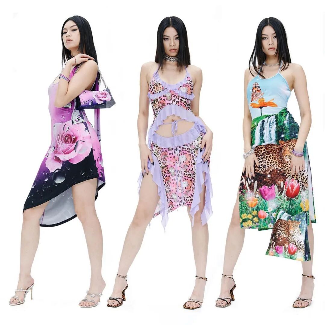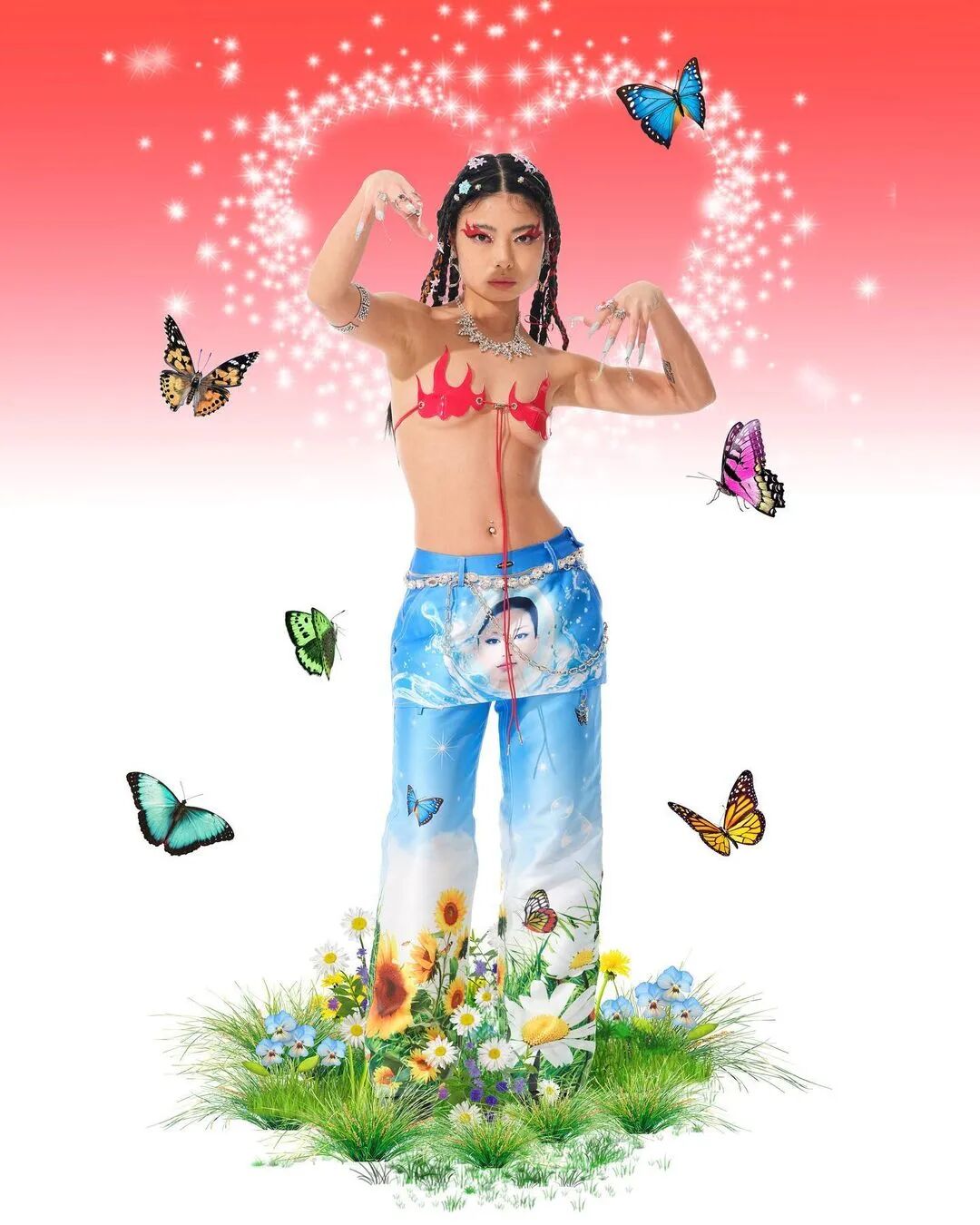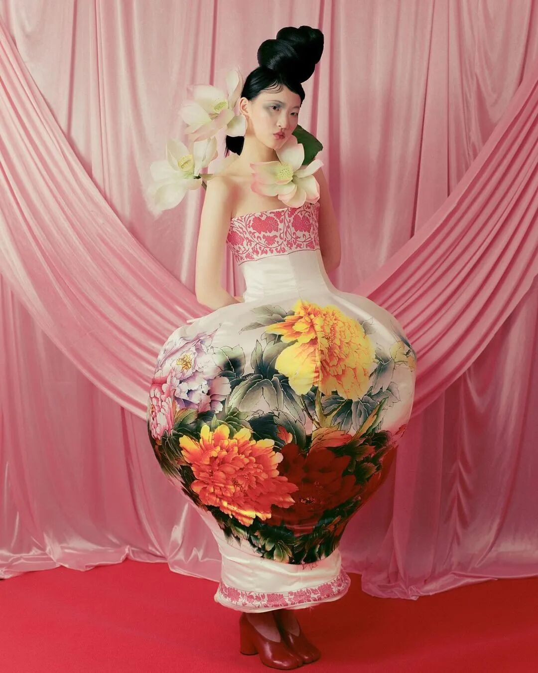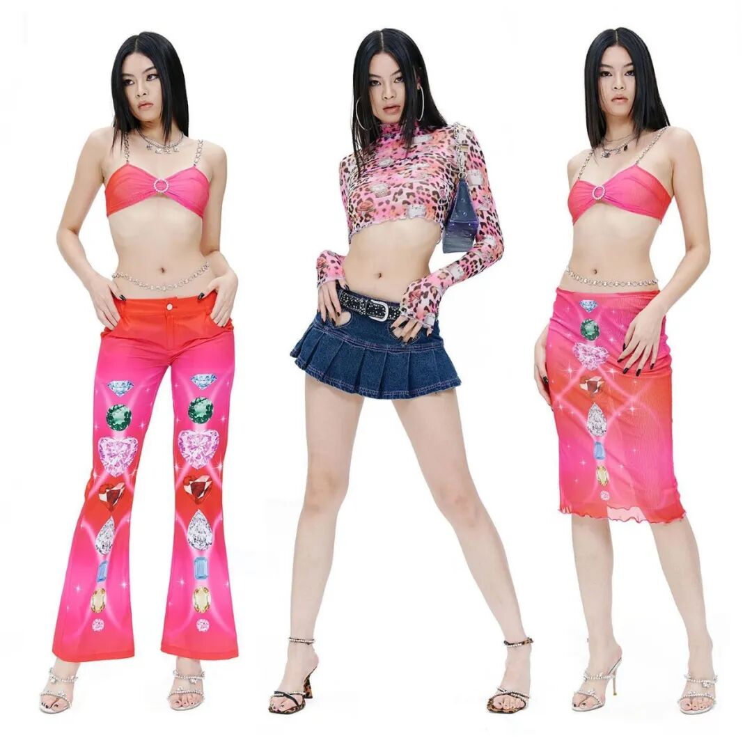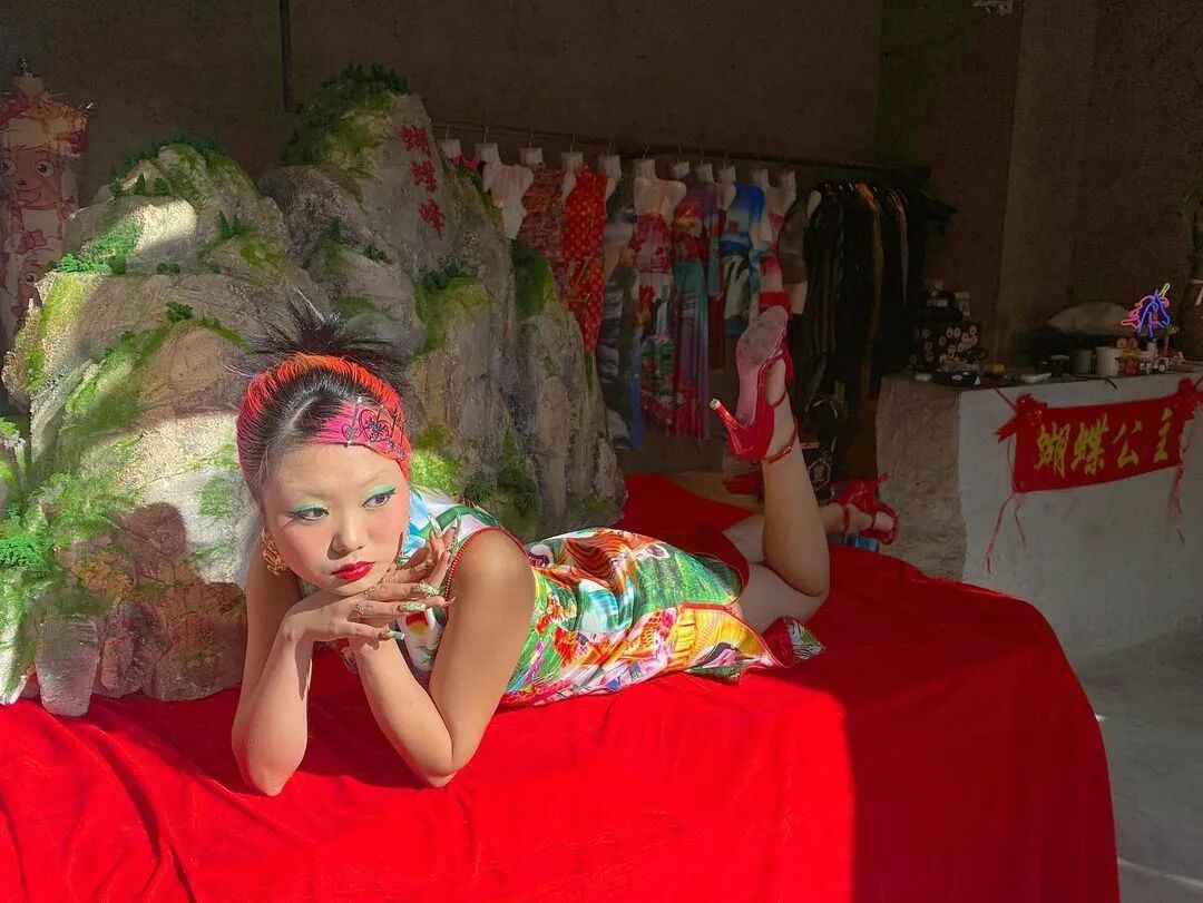早期(2020年),HuDieGongzhu的设计也许会让人觉得非常“辣眼睛”,是真的让人亚到语塞的程度……但随着品牌和设计师的不断成长,不得不承认HuDieGongzhu确实也有了一些改变,无论是印花的选择、服装的配色还是款式的设计,都在“新中式”“辣妹装”“千禧风”中寻求最合适的融合点。