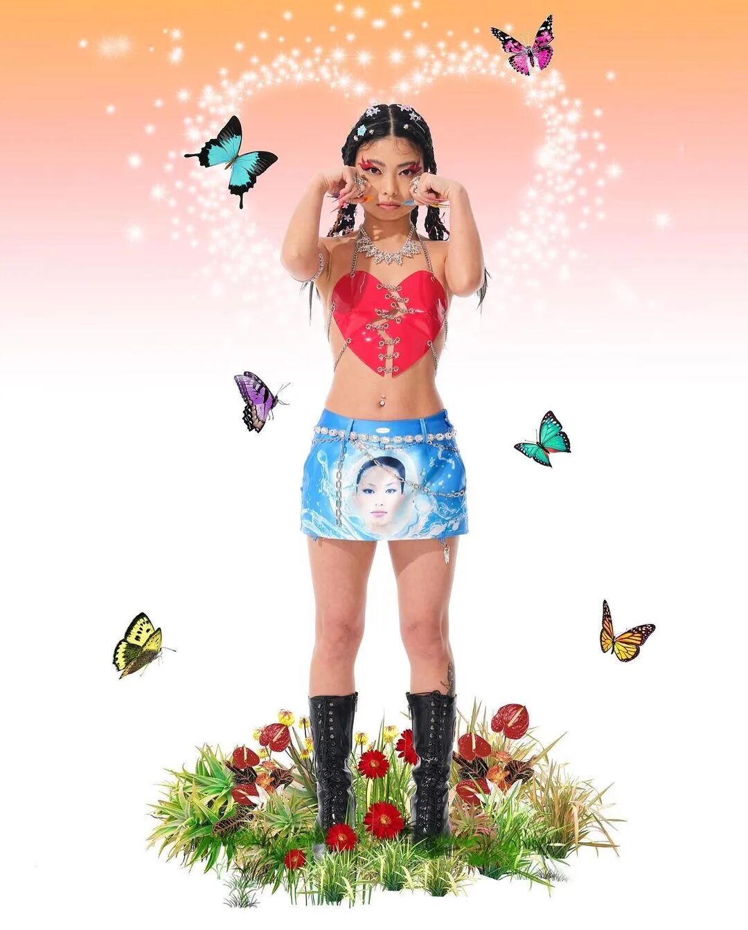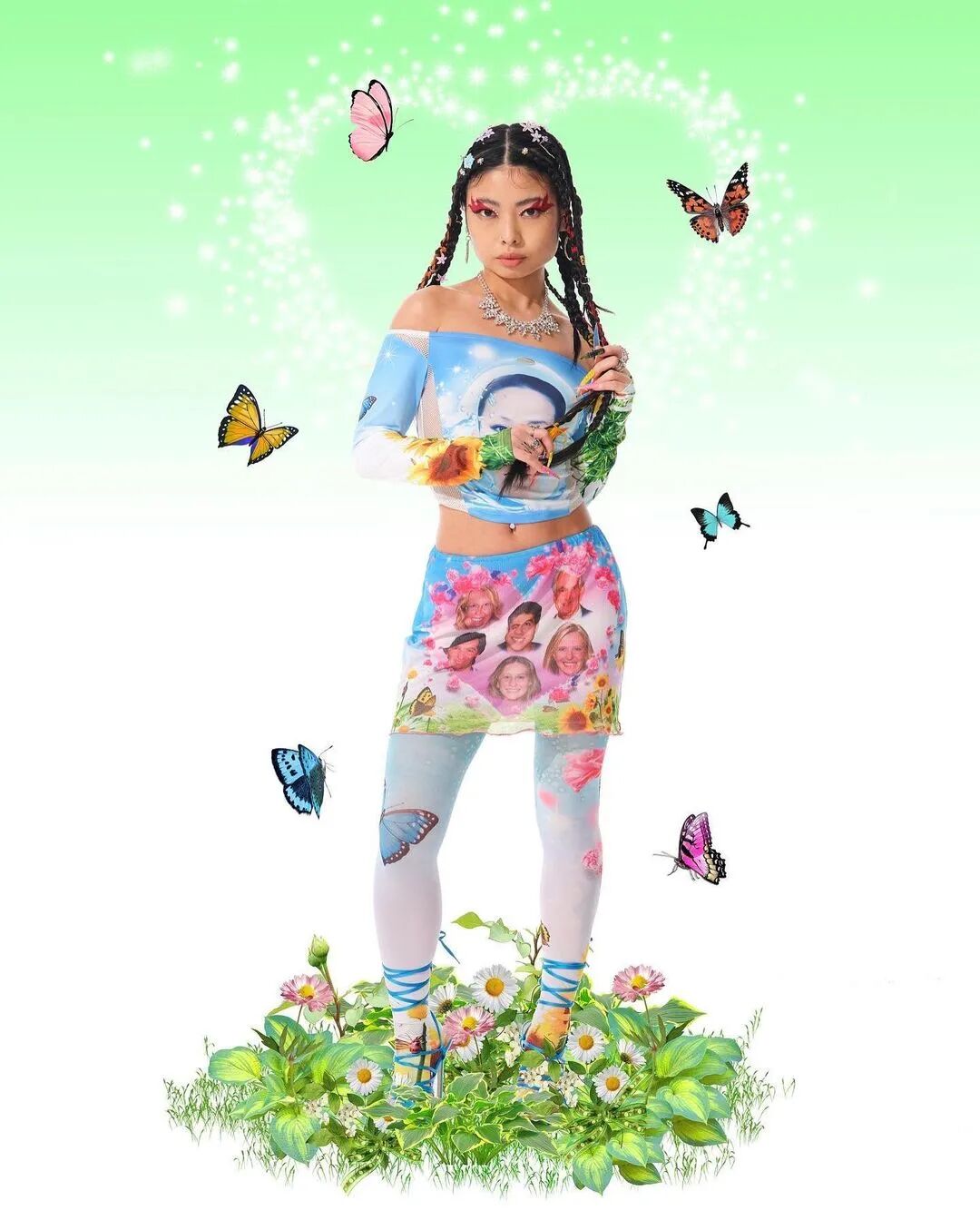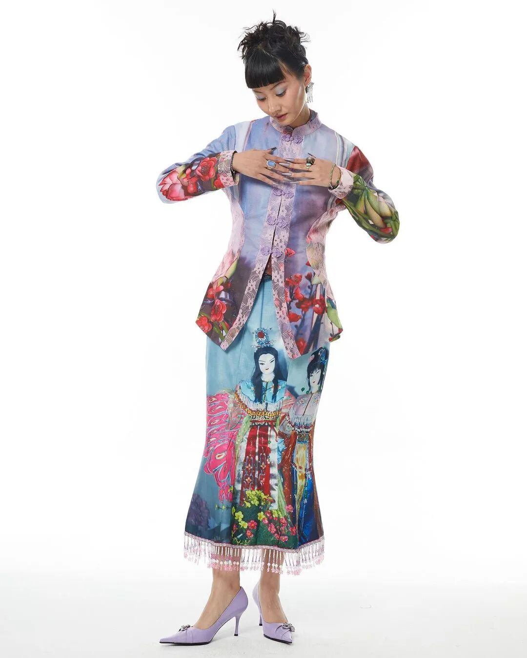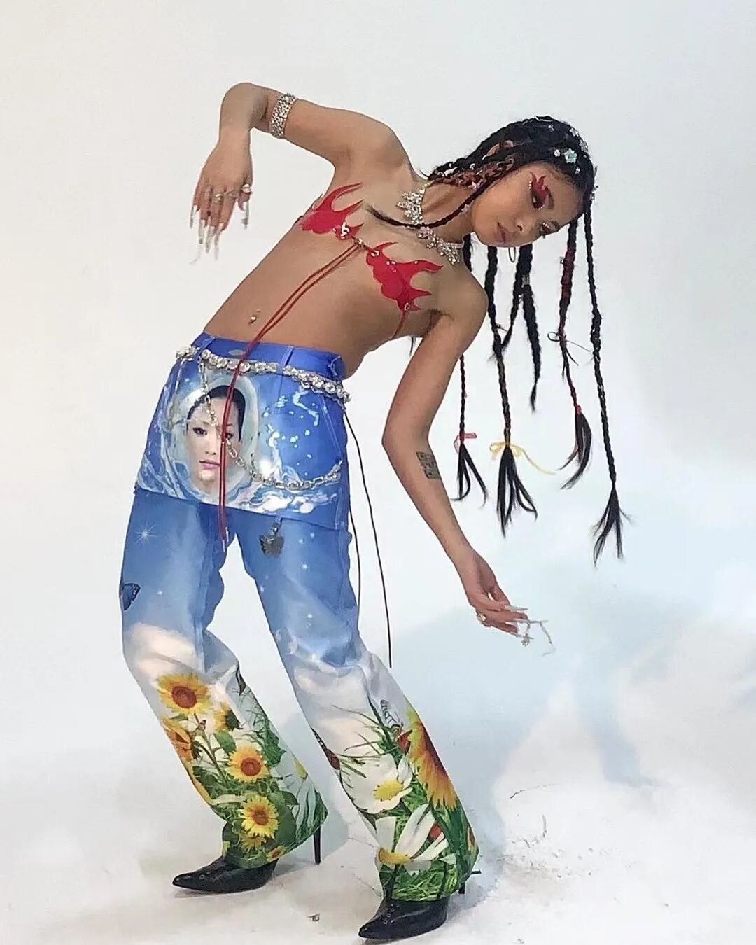 早期(2020年),HuDieGongzhu的设计也许会让人觉得非常“辣眼睛”,是真的让人亚到语塞的程度……但随着品牌和设计师的不断成长,不得不承认HuDieGongzhu确实也有了一些改变,无论是印花的选择、服装的配色还是款式的设计,都在“新中式”“辣妹装”“千禧风”中寻求最合适的融合点。