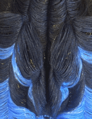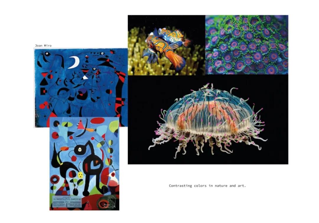 她对Mandarin鱼和flower hat水母等水下生物着迷,这样的灵感转化为她的渐变色纺织品,结合floating技术,实现了从一种色调到另一种色调的过渡。