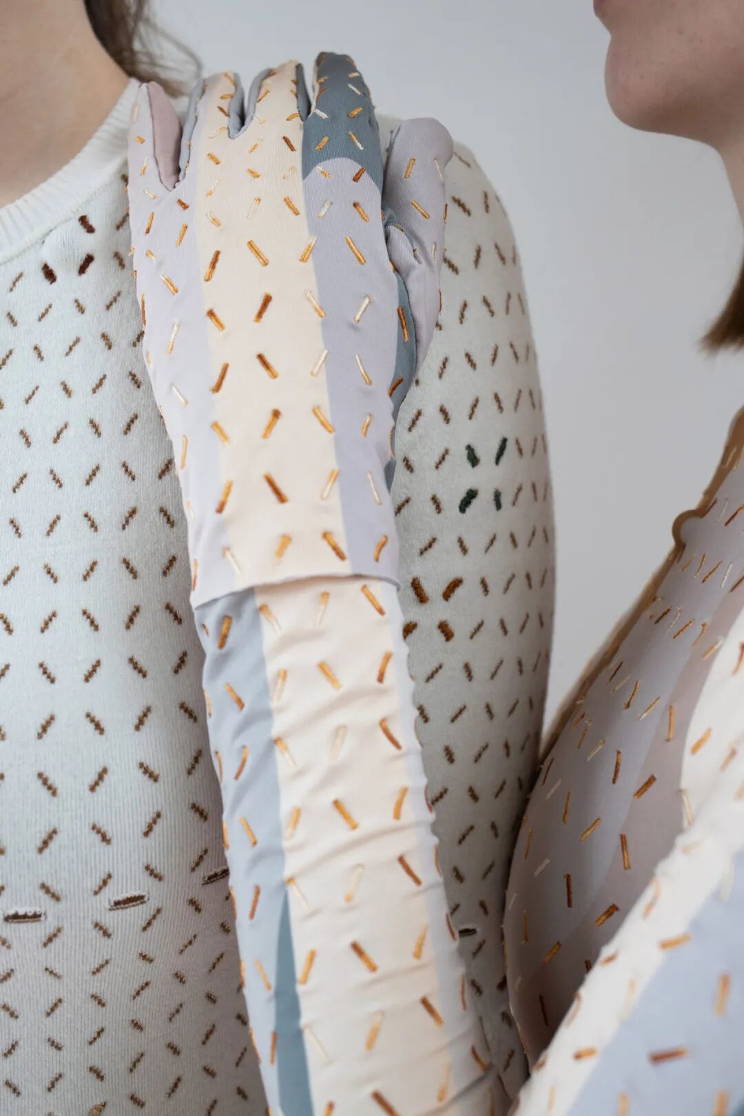 “这些衣服不仅是个人进入具身认知和自我意识的界面,也代表着设计将科学、商业、医学、精神病学和纺织等领域融合在一起的方式,”Deschl 说。