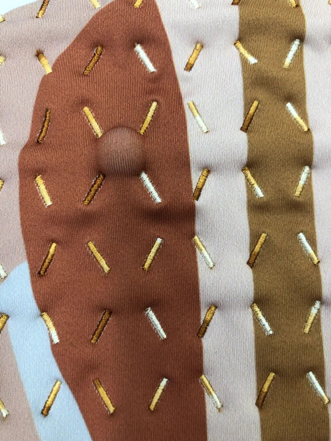 另外一套是经络图案,材料取自回收针织运动休闲面料,宝石充当按摩球。