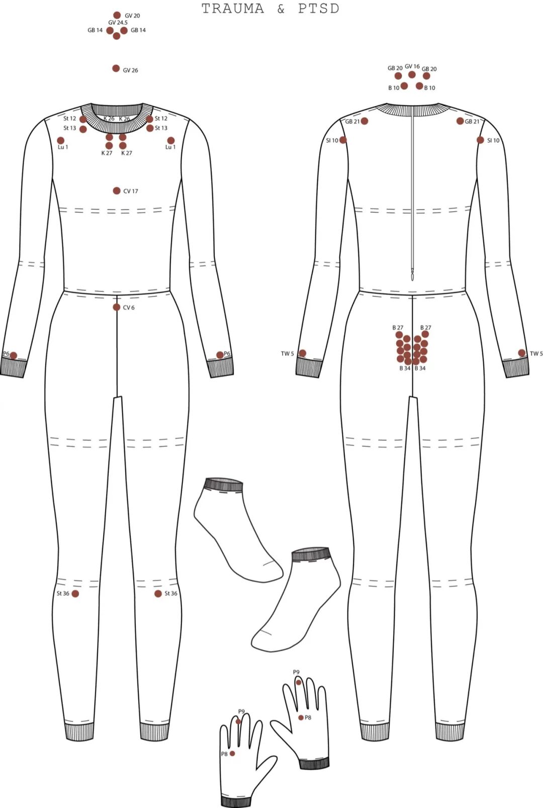 设计理念是结合指压疗法与基于瑜伽的具身认知运动,利用自身体重提高目标穴位的压力。
