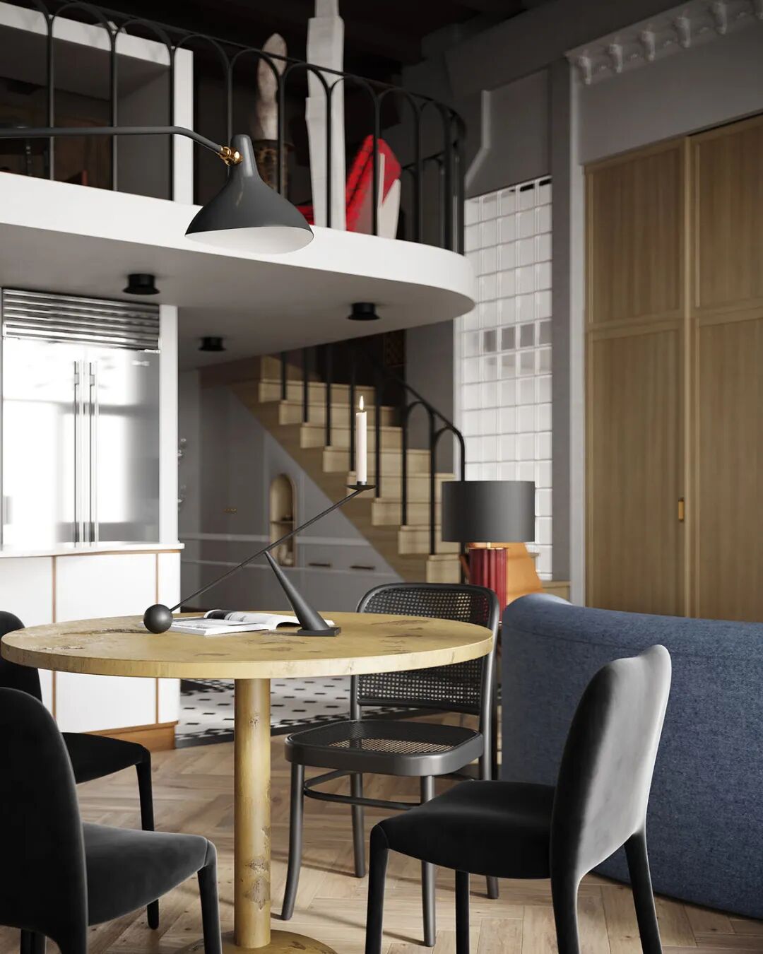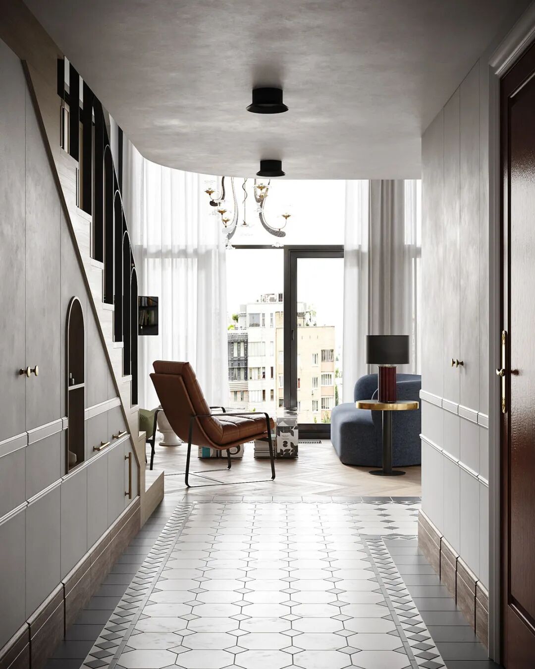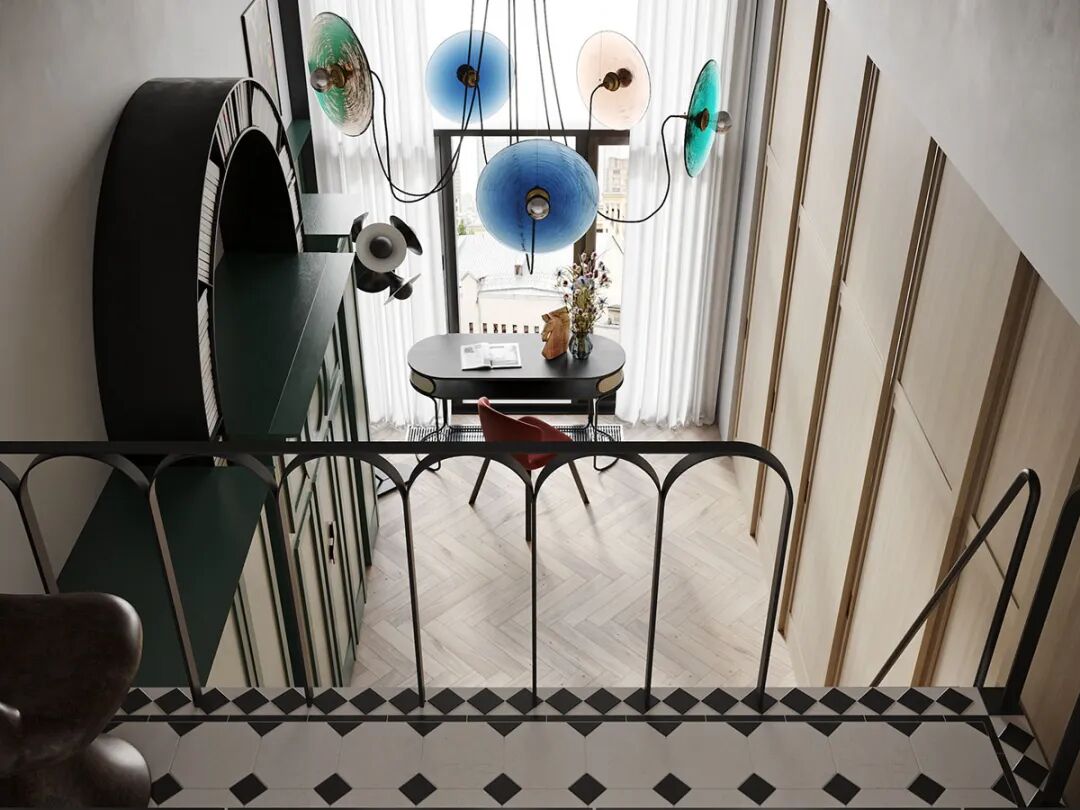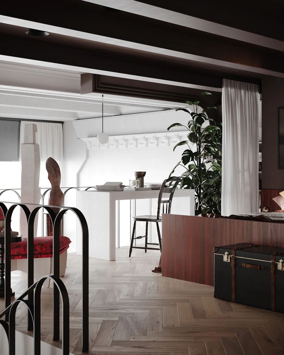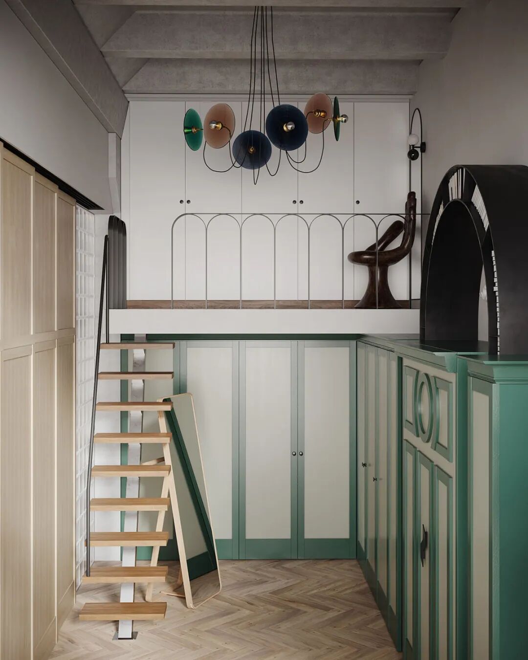 作品集2023-05-12 颜超高复古风家居设计,时尚大气,更衣室、隐形床设计,简直一绝! 这套住宅位于俄罗斯 格局:1+1房2厅1卫 由 Lake & Walls 设计 这套公寓拥有 4.5 米层高和令人印象深刻的大窗户 温馨设计,色彩斑斓和不拘一格的装饰令人着迷 1.客厅设计 由现代弧形沙发和古典风格的枝形吊灯 构成标志性客厅内的休闲 玻璃咖啡桌可以存放着日常阅读的书籍 棕褐色皮椅与木色调的背墙营造出柔和空间 人字形木地板延伸到整个客厅 则在走廊和玄关入口处铺设六边形瓷砖 进入客厅, 选用弧形沙发,一张木制小底座餐桌 和现代黑色餐椅 构成了对比鲜明的组合 2.餐厅设计 3.楼梯设计 楼上夹层主卧室可通过带有拱形金属栏杆的迷人楼梯设计进入 4.厨房设计 玄关走廊的地板与厨房相连 都选耐磨、易清洁的瓷砖 一个中岛台将烹饪与客厅分界 配置两个凳子,可在吧台就餐 有趣的餐桌是Colin King Studio 为 Menu 设计的互连烛台 5.更衣室设计 客厅隔断通向一个两层的更衣室 这间房间也可用作第二间卧室 墙上隐藏着一张墨菲床 一盏引人注目的卧室吊灯 为独特设计注入了丰富的色彩 6.书房&次卧设计 楼梯设计连接二楼壁橱以节省空间 玻璃砖使得房间有充足采光 墨菲床关闭时变成着一个阅读多功能空间 一盏独特的落地灯照亮了梳妆台 一个拱形书架在墨菲床顶部构成雅致空间 灰泥浮雕填充了拱门的跨度 两个现代壁灯藏在里面,为阅读提供灯光 7.主卧设计 更衣室地板采用黑白设计与厨房走廊相呼应 大胆的中世纪现代椅子是 Pedro Friedeberg 的Silver Hand 椅子 进入客厅上方的大夹层卧室 卧室以苦巧克力这种单一的深色 模糊了低天花板的线条,并增加了深度 深色的墙壁和天花板的颜色 也唤起了一种舒适的睡眠 在夹层栏杆上设置了一张清爽的白色办公桌 办公时通过高耸的客厅窗户获得了城市的美景 古色古香的椅子与现代简约桌子相得益彰 晚上,一层透明的白色窗帘将卧室与城市隔开 金色的床头台灯散发出宁静的光芒 使它们整齐地漂浮在地板上 在床头背墙的后面定制收纳衣柜 以最大限度地利用空间 现代壁灯照亮了黑暗的卧室设计 小艺术品和红色椅子 为卧室提供了充满活力的流行色彩 一系列古董棋盘创造了一个从楼梯上下来的色彩缤纷的墙面设计 8.浴室设计 独特的浴室水槽单元被玻璃砖墙的自然光照亮 在玻璃砖上方,定制切割的浴室镜子反映了美妙的天花板艺术 优雅的壁灯在别致的椭圆形梳妆镜两侧燃烧 装饰花瓶漂亮地装饰着银色的梳妆台台面 木制架子似乎从匹配的木制墙板上挤出来 展示洗漱用品、小摆设和新鲜香味的芦苇扩散器 在房间的另一边,淋浴房巧妙地用黄铜框起来 现代不锈钢毛巾加热器旁边挂着一幅经典画作 当代天花板灯穿过传统的天花板壁画 卫生间被塞进一个私人房间,远离其他浴室设施 复古的开心果马桶搭配现代的钢质冲水板 本文来自微信公众号“亚太室内设计”(ID:ytsnsj)。大作社经授权转载,该文观点仅代表作者本人,大作社平台仅提供信息存储空间服务。 TAGS: 客厅现代空间设计 相关文章Kleoniki Andr…这是大王Day.281获奖作品《2020最佳图书…精选头像|搞怪来袭!安东尼奥·布埃诺 作品配色清新梦幻的场景插画,充…美国Jennifer Mc…【小鹏设计】设计小改/动力…【首发】地点空间丨打破空间…谢商家不坑之恩!只骗有钱人…
