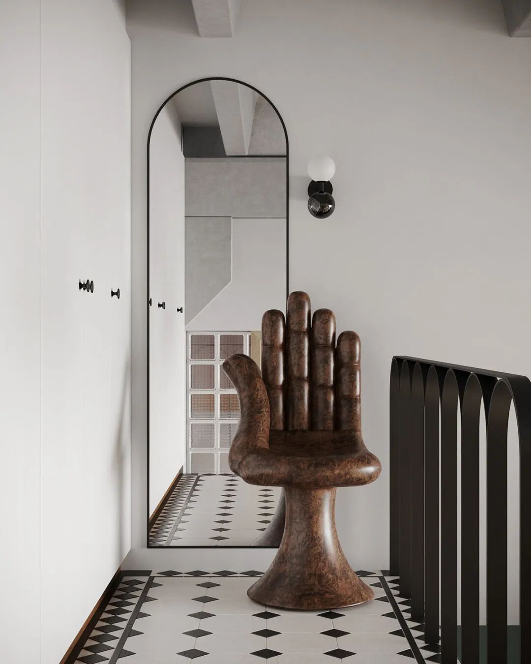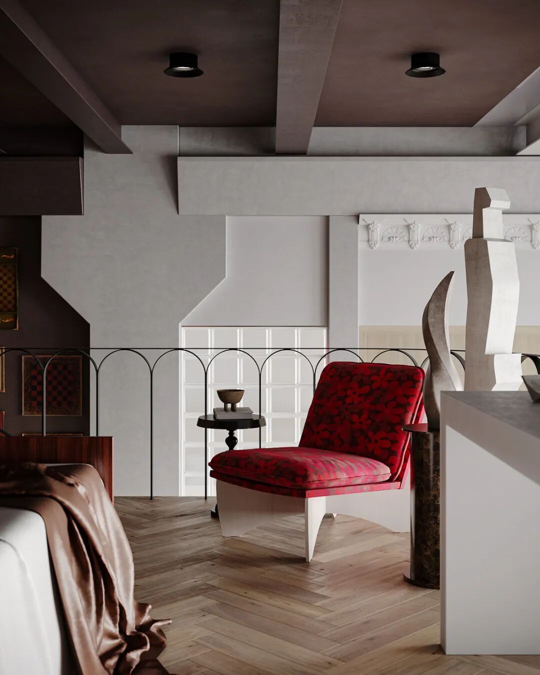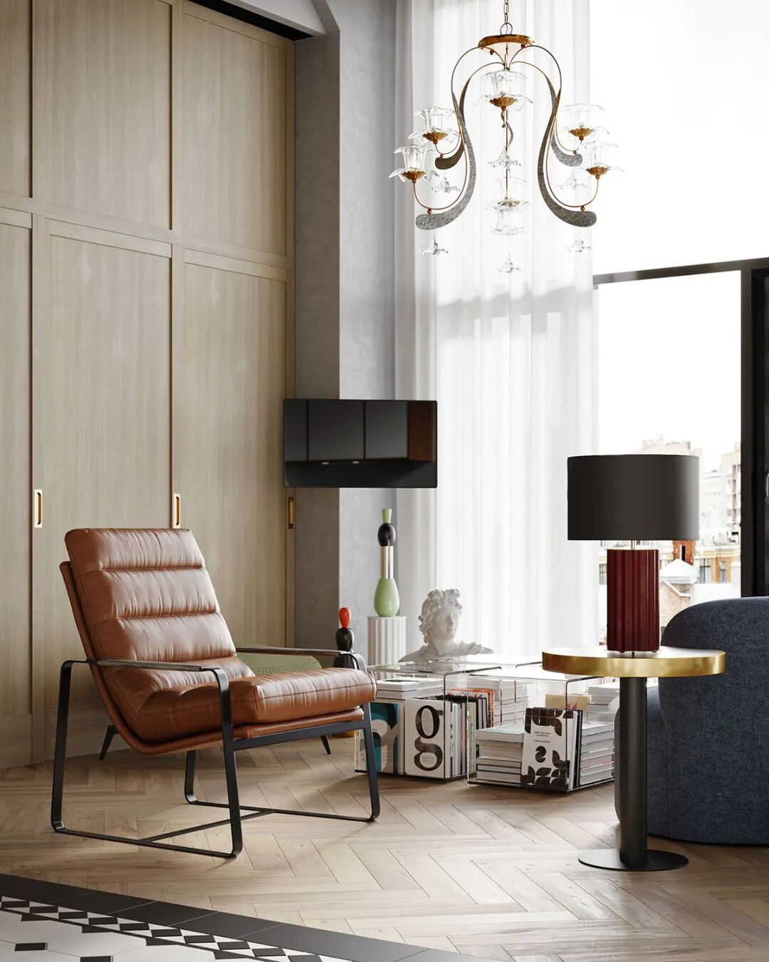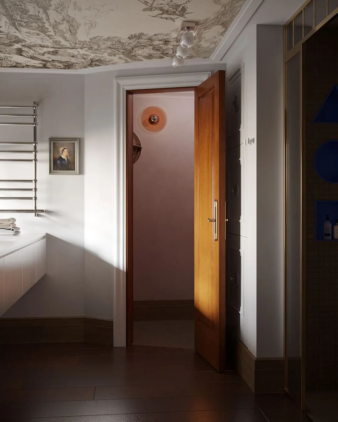 作品集2023-05-12 颜超高复古风家居设计,时尚大气,更衣室、隐形床设计,简直一绝! 这套住宅位于俄罗斯 格局:1+1房2厅1卫 由 Lake & Walls 设计 这套公寓拥有 4.5 米层高和令人印象深刻的大窗户 温馨设计,色彩斑斓和不拘一格的装饰令人着迷 1.客厅设计 由现代弧形沙发和古典风格的枝形吊灯 构成标志性客厅内的休闲 玻璃咖啡桌可以存放着日常阅读的书籍 棕褐色皮椅与木色调的背墙营造出柔和空间 人字形木地板延伸到整个客厅 则在走廊和玄关入口处铺设六边形瓷砖 进入客厅, 选用弧形沙发,一张木制小底座餐桌 和现代黑色餐椅 构成了对比鲜明的组合 2.餐厅设计 3.楼梯设计 楼上夹层主卧室可通过带有拱形金属栏杆的迷人楼梯设计进入 4.厨房设计 玄关走廊的地板与厨房相连 都选耐磨、易清洁的瓷砖 一个中岛台将烹饪与客厅分界 配置两个凳子,可在吧台就餐 有趣的餐桌是Colin King Studio 为 Menu 设计的互连烛台 5.更衣室设计 客厅隔断通向一个两层的更衣室 这间房间也可用作第二间卧室 墙上隐藏着一张墨菲床 一盏引人注目的卧室吊灯 为独特设计注入了丰富的色彩 6.书房&次卧设计 楼梯设计连接二楼壁橱以节省空间 玻璃砖使得房间有充足采光 墨菲床关闭时变成着一个阅读多功能空间 一盏独特的落地灯照亮了梳妆台 一个拱形书架在墨菲床顶部构成雅致空间 灰泥浮雕填充了拱门的跨度 两个现代壁灯藏在里面,为阅读提供灯光 7.主卧设计 更衣室地板采用黑白设计与厨房走廊相呼应 大胆的中世纪现代椅子是 Pedro Friedeberg 的Silver Hand 椅子 进入客厅上方的大夹层卧室 卧室以苦巧克力这种单一的深色 模糊了低天花板的线条,并增加了深度 深色的墙壁和天花板的颜色 也唤起了一种舒适的睡眠 在夹层栏杆上设置了一张清爽的白色办公桌 办公时通过高耸的客厅窗户获得了城市的美景 古色古香的椅子与现代简约桌子相得益彰 晚上,一层透明的白色窗帘将卧室与城市隔开 金色的床头台灯散发出宁静的光芒 使它们整齐地漂浮在地板上 在床头背墙的后面定制收纳衣柜 以最大限度地利用空间 现代壁灯照亮了黑暗的卧室设计 小艺术品和红色椅子 为卧室提供了充满活力的流行色彩 一系列古董棋盘创造了一个从楼梯上下来的色彩缤纷的墙面设计 8.浴室设计 独特的浴室水槽单元被玻璃砖墙的自然光照亮 在玻璃砖上方,定制切割的浴室镜子反映了美妙的天花板艺术 优雅的壁灯在别致的椭圆形梳妆镜两侧燃烧 装饰花瓶漂亮地装饰着银色的梳妆台台面 木制架子似乎从匹配的木制墙板上挤出来 展示洗漱用品、小摆设和新鲜香味的芦苇扩散器 在房间的另一边,淋浴房巧妙地用黄铜框起来 现代不锈钢毛巾加热器旁边挂着一幅经典画作 当代天花板灯穿过传统的天花板壁画 卫生间被塞进一个私人房间,远离其他浴室设施 复古的开心果马桶搭配现代的钢质冲水板 本文来自微信公众号“亚太室内设计”(ID:ytsnsj)。大作社经授权转载,该文观点仅代表作者本人,大作社平台仅提供信息存储空间服务。 TAGS: 客厅现代空间设计 相关文章Kleoniki Andr…这是大王Day.281获奖作品《2020最佳图书…精选头像|搞怪来袭!安东尼奥·布埃诺 作品配色清新梦幻的场景插画,充…美国Jennifer Mc…【小鹏设计】设计小改/动力…【首发】地点空间丨打破空间…谢商家不坑之恩!只骗有钱人…