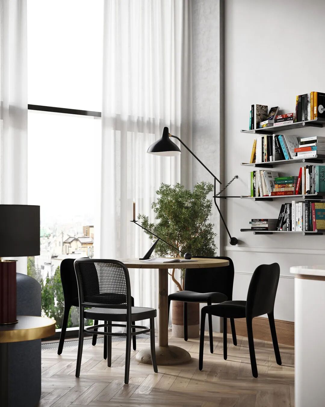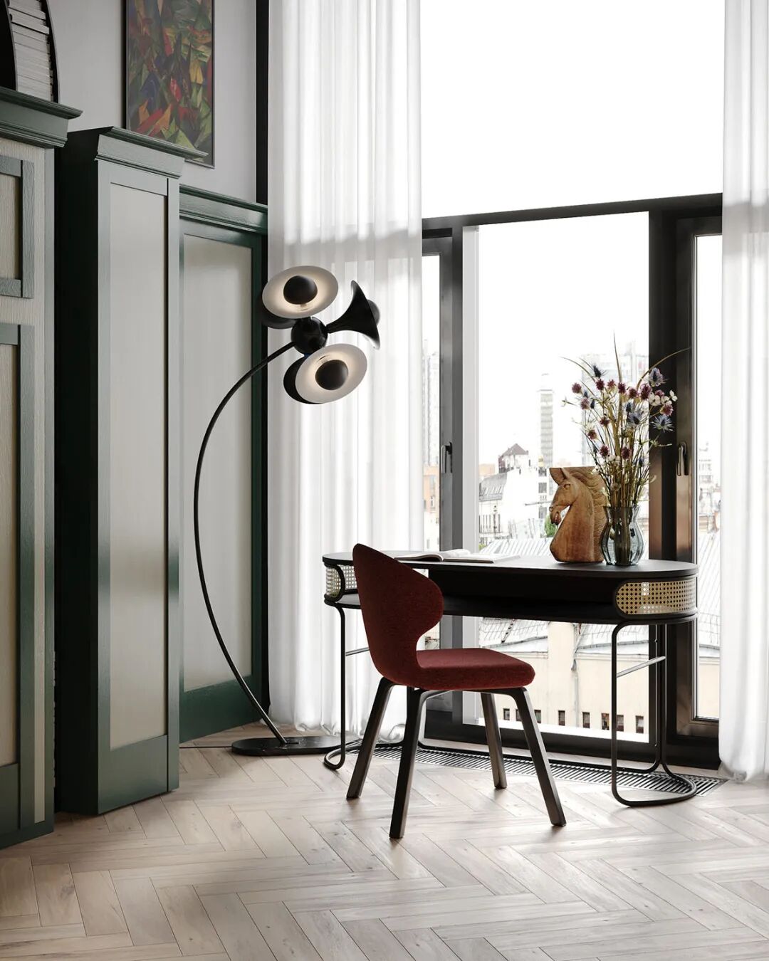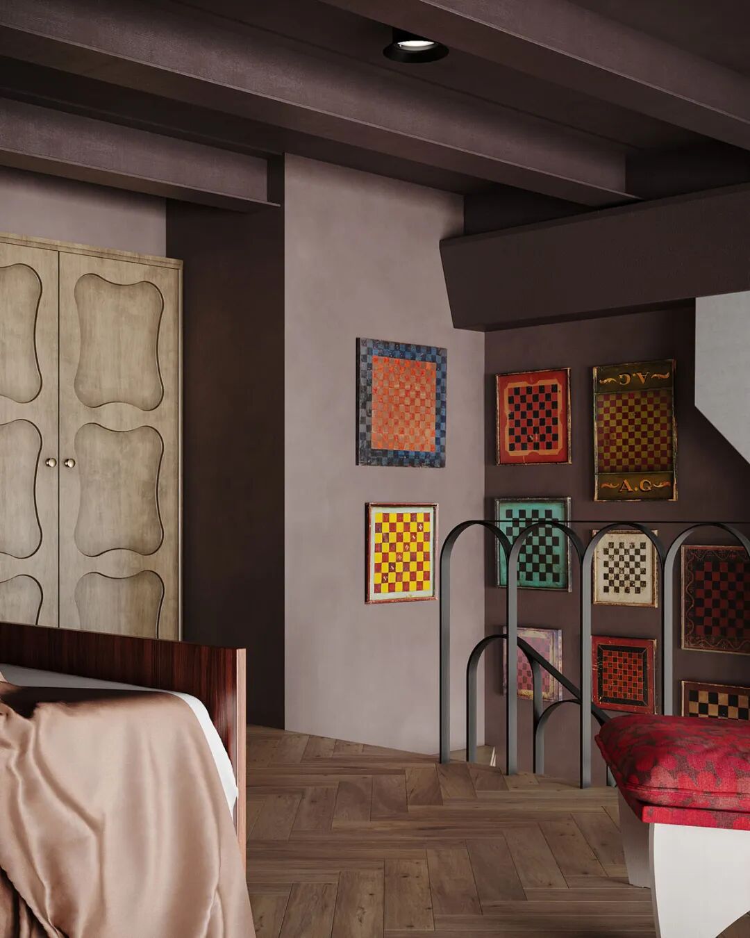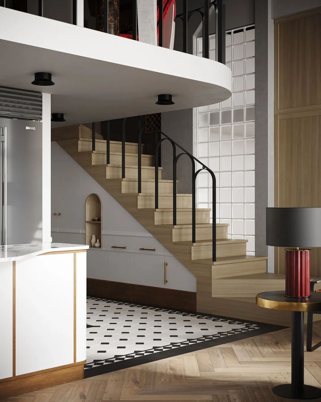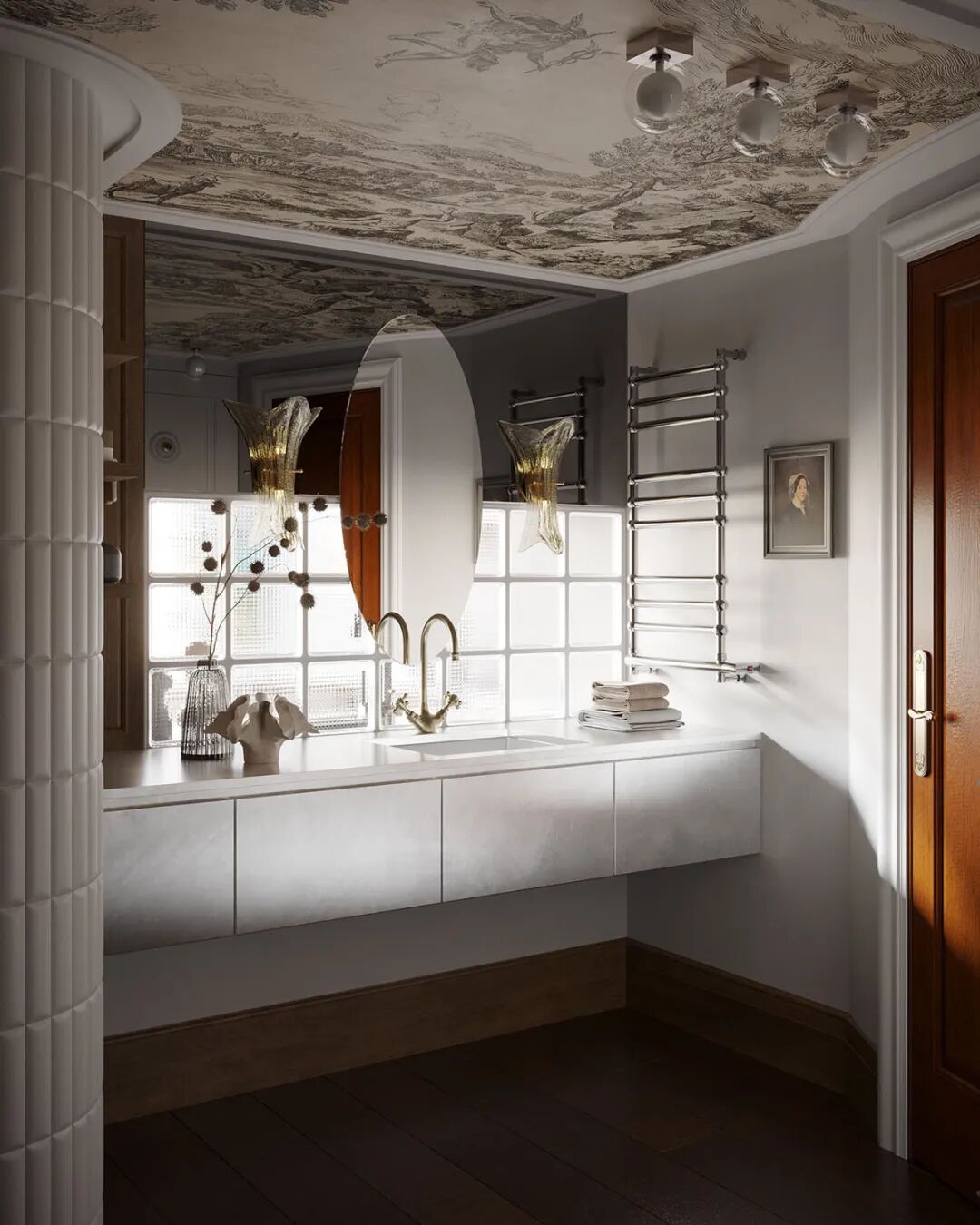 作品集2023-05-12 颜超高复古风家居设计,时尚大气,更衣室、隐形床设计,简直一绝! 这套住宅位于俄罗斯 格局:1+1房2厅1卫 由 Lake & Walls 设计 这套公寓拥有 4.5 米层高和令人印象深刻的大窗户 温馨设计,色彩斑斓和不拘一格的装饰令人着迷 1.客厅设计 由现代弧形沙发和古典风格的枝形吊灯 构成标志性客厅内的休闲 玻璃咖啡桌可以存放着日常阅读的书籍 棕褐色皮椅与木色调的背墙营造出柔和空间 人字形木地板延伸到整个客厅 则在走廊和玄关入口处铺设六边形瓷砖 进入客厅, 选用弧形沙发,一张木制小底座餐桌 和现代黑色餐椅 构成了对比鲜明的组合 2.餐厅设计 3.楼梯设计 楼上夹层主卧室可通过带有拱形金属栏杆的迷人楼梯设计进入 4.厨房设计 玄关走廊的地板与厨房相连 都选耐磨、易清洁的瓷砖 一个中岛台将烹饪与客厅分界 配置两个凳子,可在吧台就餐 有趣的餐桌是Colin King Studio 为 Menu 设计的互连烛台 5.更衣室设计 客厅隔断通向一个两层的更衣室 这间房间也可用作第二间卧室 墙上隐藏着一张墨菲床 一盏引人注目的卧室吊灯 为独特设计注入了丰富的色彩 6.书房&次卧设计 楼梯设计连接二楼壁橱以节省空间 玻璃砖使得房间有充足采光 墨菲床关闭时变成着一个阅读多功能空间 一盏独特的落地灯照亮了梳妆台 一个拱形书架在墨菲床顶部构成雅致空间 灰泥浮雕填充了拱门的跨度 两个现代壁灯藏在里面,为阅读提供灯光 7.主卧设计 更衣室地板采用黑白设计与厨房走廊相呼应 大胆的中世纪现代椅子是 Pedro Friedeberg 的Silver Hand 椅子 进入客厅上方的大夹层卧室 卧室以苦巧克力这种单一的深色 模糊了低天花板的线条,并增加了深度 深色的墙壁和天花板的颜色 也唤起了一种舒适的睡眠 在夹层栏杆上设置了一张清爽的白色办公桌 办公时通过高耸的客厅窗户获得了城市的美景 古色古香的椅子与现代简约桌子相得益彰 晚上,一层透明的白色窗帘将卧室与城市隔开 金色的床头台灯散发出宁静的光芒 使它们整齐地漂浮在地板上 在床头背墙的后面定制收纳衣柜 以最大限度地利用空间 现代壁灯照亮了黑暗的卧室设计 小艺术品和红色椅子 为卧室提供了充满活力的流行色彩 一系列古董棋盘创造了一个从楼梯上下来的色彩缤纷的墙面设计 8.浴室设计 独特的浴室水槽单元被玻璃砖墙的自然光照亮 在玻璃砖上方,定制切割的浴室镜子反映了美妙的天花板艺术 优雅的壁灯在别致的椭圆形梳妆镜两侧燃烧 装饰花瓶漂亮地装饰着银色的梳妆台台面 木制架子似乎从匹配的木制墙板上挤出来 展示洗漱用品、小摆设和新鲜香味的芦苇扩散器 在房间的另一边,淋浴房巧妙地用黄铜框起来 现代不锈钢毛巾加热器旁边挂着一幅经典画作 当代天花板灯穿过传统的天花板壁画 卫生间被塞进一个私人房间,远离其他浴室设施 复古的开心果马桶搭配现代的钢质冲水板 本文来自微信公众号“亚太室内设计”(ID:ytsnsj)。大作社经授权转载,该文观点仅代表作者本人,大作社平台仅提供信息存储空间服务。 TAGS: 客厅现代空间设计 相关文章Kleoniki Andr…这是大王Day.281获奖作品《2020最佳图书…精选头像|搞怪来袭!安东尼奥·布埃诺 作品配色清新梦幻的场景插画,充…美国Jennifer Mc…【小鹏设计】设计小改/动力…【首发】地点空间丨打破空间…谢商家不坑之恩!只骗有钱人…