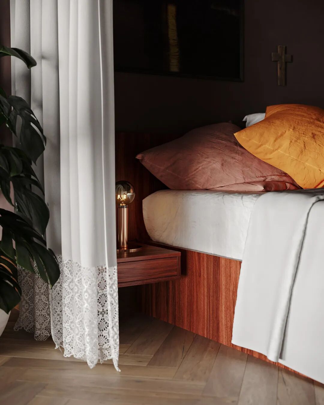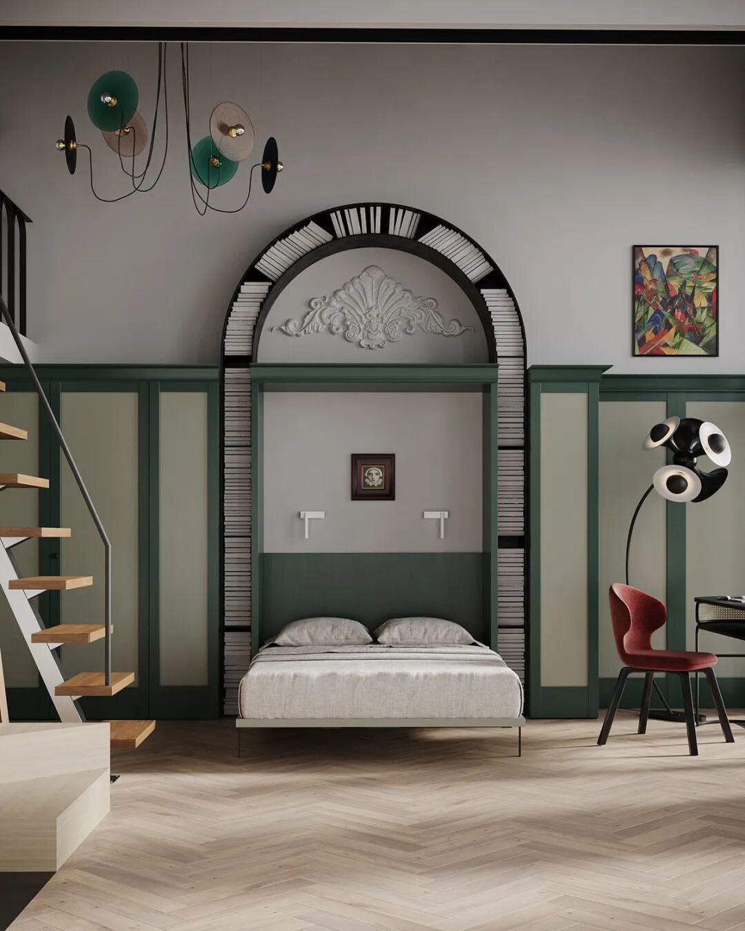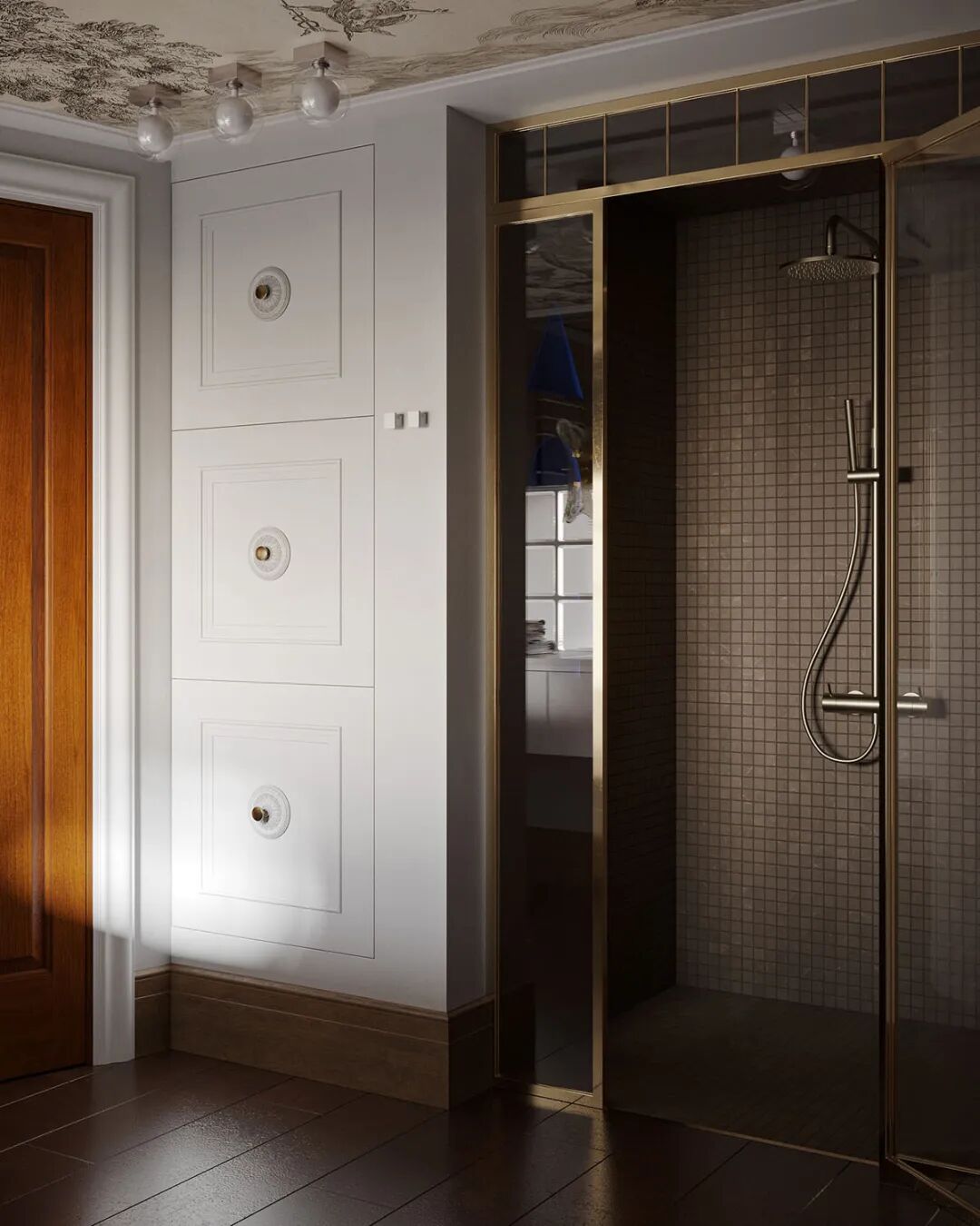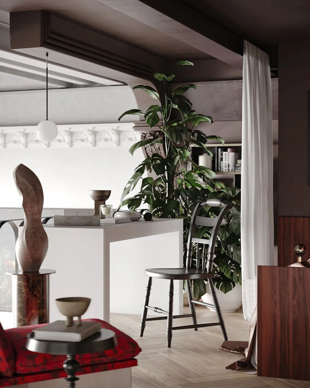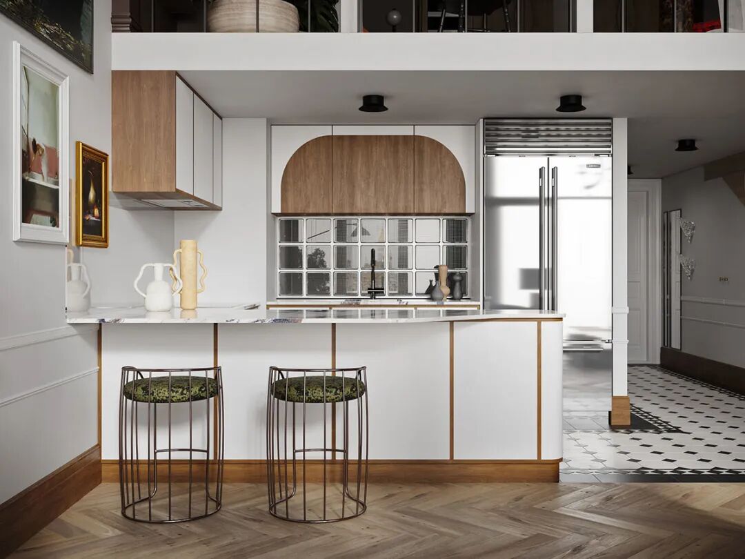 作品集2023-05-12 颜超高复古风家居设计,时尚大气,更衣室、隐形床设计,简直一绝! 这套住宅位于俄罗斯 格局:1+1房2厅1卫 由 Lake & Walls 设计 这套公寓拥有 4.5 米层高和令人印象深刻的大窗户 温馨设计,色彩斑斓和不拘一格的装饰令人着迷 1.客厅设计 由现代弧形沙发和古典风格的枝形吊灯 构成标志性客厅内的休闲 玻璃咖啡桌可以存放着日常阅读的书籍 棕褐色皮椅与木色调的背墙营造出柔和空间 人字形木地板延伸到整个客厅 则在走廊和玄关入口处铺设六边形瓷砖 进入客厅, 选用弧形沙发,一张木制小底座餐桌 和现代黑色餐椅 构成了对比鲜明的组合 2.餐厅设计 3.楼梯设计 楼上夹层主卧室可通过带有拱形金属栏杆的迷人楼梯设计进入 4.厨房设计 玄关走廊的地板与厨房相连 都选耐磨、易清洁的瓷砖 一个中岛台将烹饪与客厅分界 配置两个凳子,可在吧台就餐 有趣的餐桌是Colin King Studio 为 Menu 设计的互连烛台 5.更衣室设计 客厅隔断通向一个两层的更衣室 这间房间也可用作第二间卧室 墙上隐藏着一张墨菲床 一盏引人注目的卧室吊灯 为独特设计注入了丰富的色彩 6.书房&次卧设计 楼梯设计连接二楼壁橱以节省空间 玻璃砖使得房间有充足采光 墨菲床关闭时变成着一个阅读多功能空间 一盏独特的落地灯照亮了梳妆台 一个拱形书架在墨菲床顶部构成雅致空间 灰泥浮雕填充了拱门的跨度 两个现代壁灯藏在里面,为阅读提供灯光 7.主卧设计 更衣室地板采用黑白设计与厨房走廊相呼应 大胆的中世纪现代椅子是 Pedro Friedeberg 的Silver Hand 椅子 进入客厅上方的大夹层卧室 卧室以苦巧克力这种单一的深色 模糊了低天花板的线条,并增加了深度 深色的墙壁和天花板的颜色 也唤起了一种舒适的睡眠 在夹层栏杆上设置了一张清爽的白色办公桌 办公时通过高耸的客厅窗户获得了城市的美景 古色古香的椅子与现代简约桌子相得益彰 晚上,一层透明的白色窗帘将卧室与城市隔开 金色的床头台灯散发出宁静的光芒 使它们整齐地漂浮在地板上 在床头背墙的后面定制收纳衣柜 以最大限度地利用空间 现代壁灯照亮了黑暗的卧室设计 小艺术品和红色椅子 为卧室提供了充满活力的流行色彩 一系列古董棋盘创造了一个从楼梯上下来的色彩缤纷的墙面设计 8.浴室设计 独特的浴室水槽单元被玻璃砖墙的自然光照亮 在玻璃砖上方,定制切割的浴室镜子反映了美妙的天花板艺术 优雅的壁灯在别致的椭圆形梳妆镜两侧燃烧 装饰花瓶漂亮地装饰着银色的梳妆台台面 木制架子似乎从匹配的木制墙板上挤出来 展示洗漱用品、小摆设和新鲜香味的芦苇扩散器 在房间的另一边,淋浴房巧妙地用黄铜框起来 现代不锈钢毛巾加热器旁边挂着一幅经典画作 当代天花板灯穿过传统的天花板壁画 卫生间被塞进一个私人房间,远离其他浴室设施 复古的开心果马桶搭配现代的钢质冲水板 本文来自微信公众号“亚太室内设计”(ID:ytsnsj)。大作社经授权转载,该文观点仅代表作者本人,大作社平台仅提供信息存储空间服务。 TAGS: 客厅现代空间设计 相关文章Kleoniki Andr…这是大王Day.281获奖作品《2020最佳图书…精选头像|搞怪来袭!安东尼奥·布埃诺 作品配色清新梦幻的场景插画,充…美国Jennifer Mc…【小鹏设计】设计小改/动力…【首发】地点空间丨打破空间…谢商家不坑之恩!只骗有钱人…