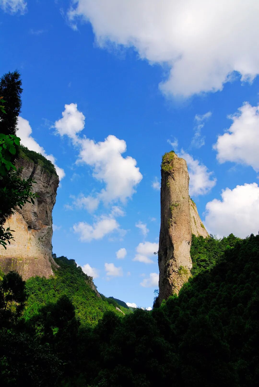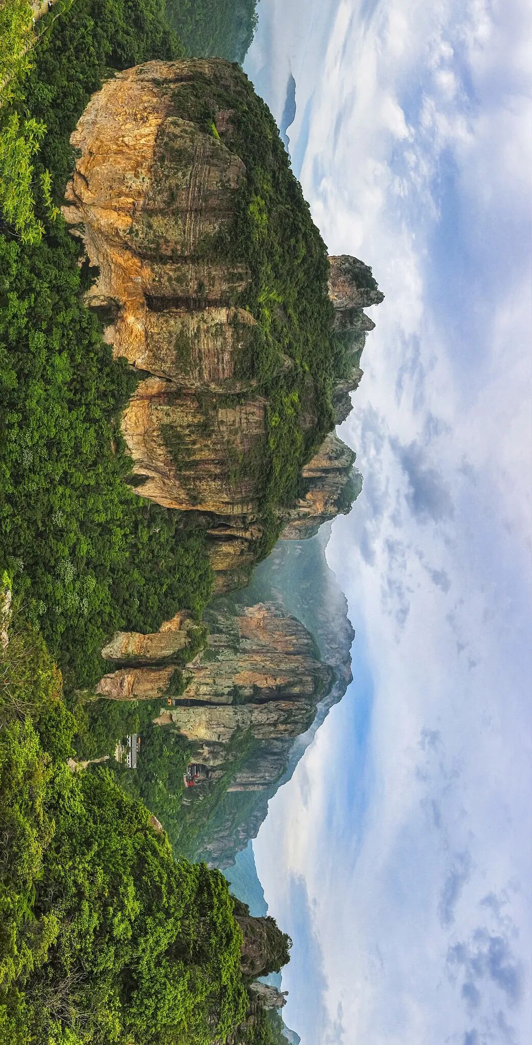 这些山体看上去方方正正,顶部很宽,上下几乎垂直,就好像一块巨石从地上生长出来,徐霞客把这里的景观称为“叠嶂”, 现代学名为“断崖”