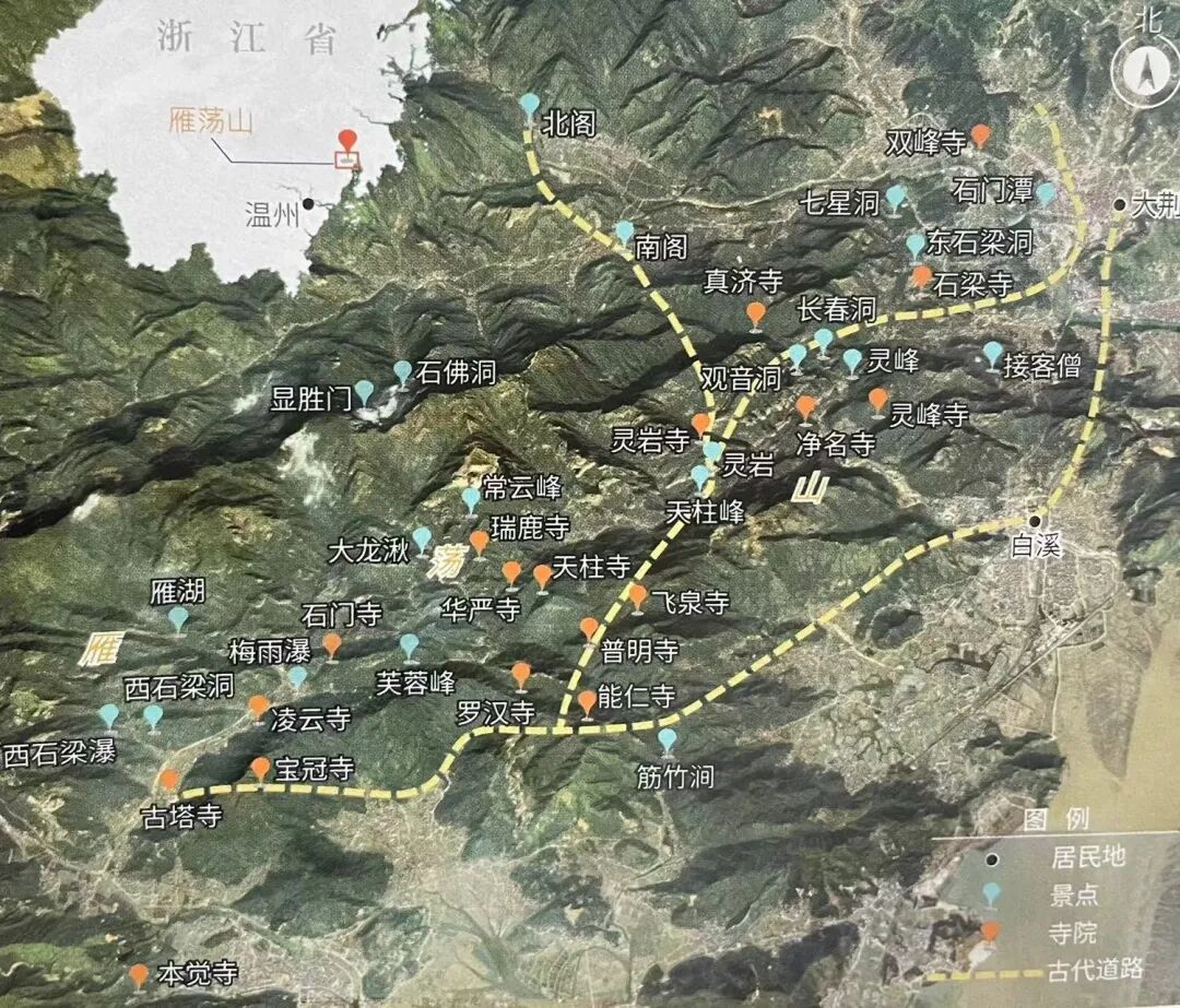雁荡山的具体位置,从上到下依次是北雁荡、中雁荡和南雁荡,北雁荡山最为出名。