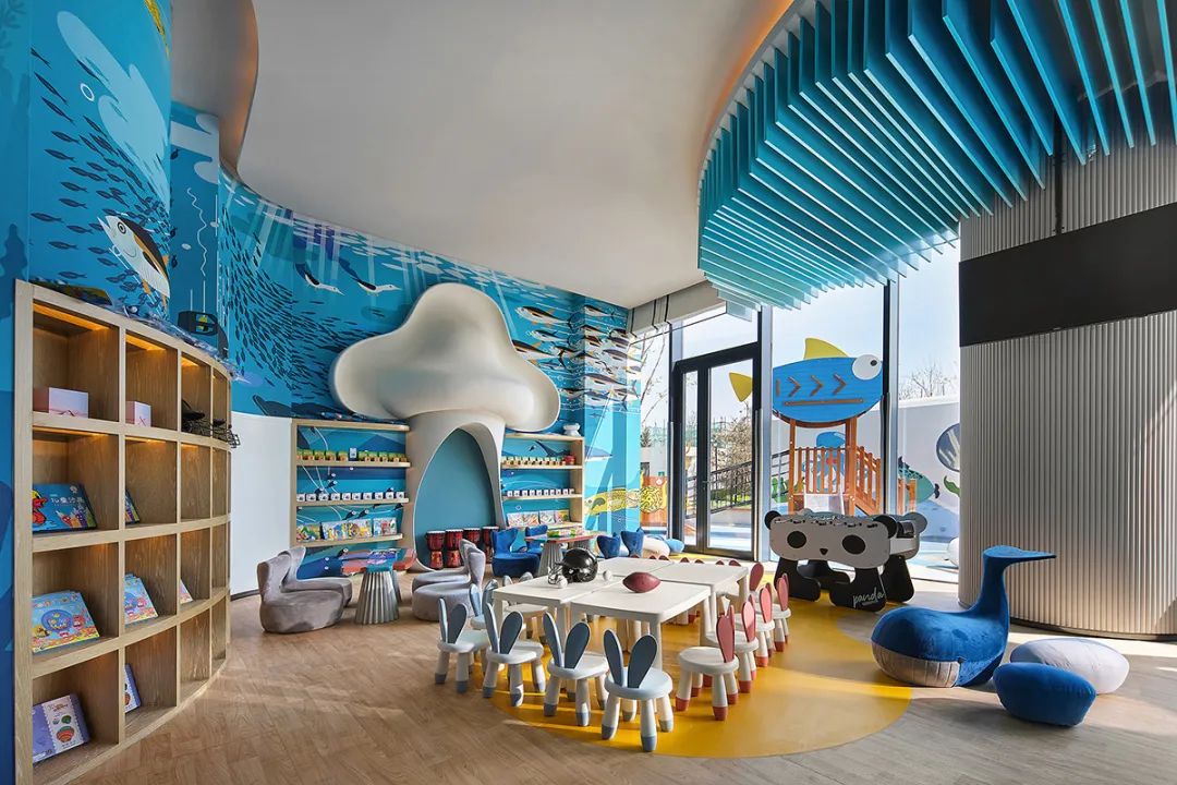 更有秦皇岛万豪度假酒店标签的,还有它与插画绘本“吾皇万睡”合力打造的主题客房(10间),有船长之梦和梦幻人鱼两大主题,一蓝一粉,内饰俏皮幽默,适合带娃来打卡。