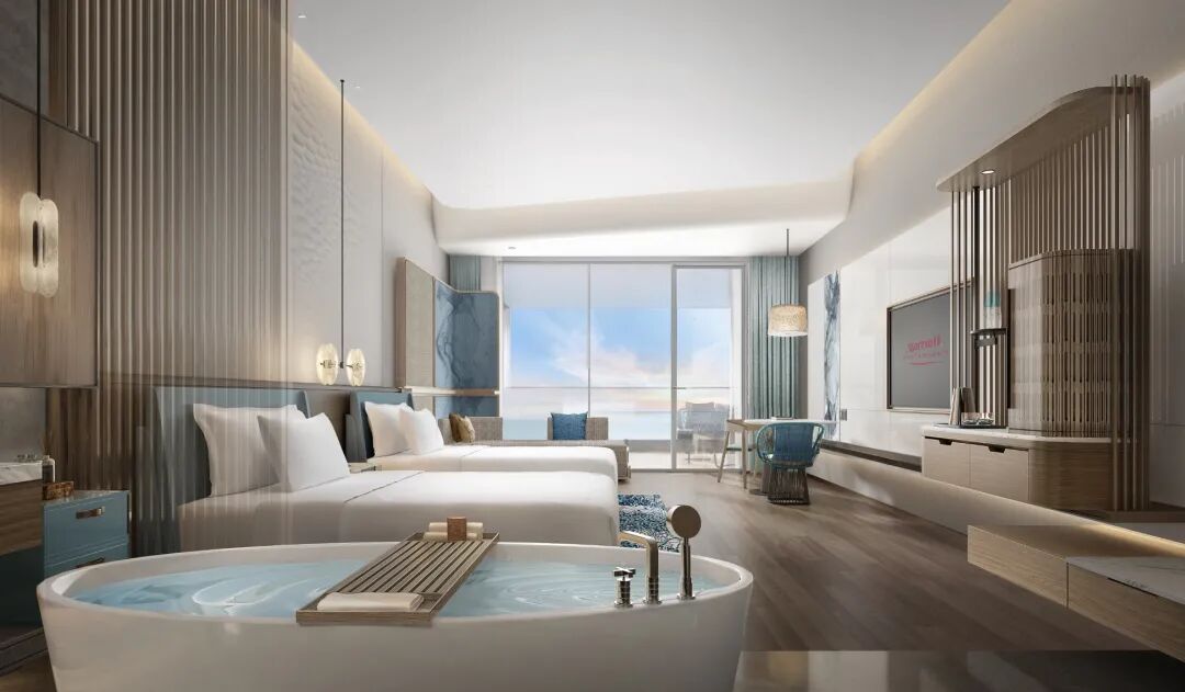 放眼全国,在目前开业的万豪酒店品牌中,能实现所有客房都能饱览一线海景的,寥落星辰,就连三亚也做不到,但秦皇岛万豪度假酒店就完成了这次“客房景观升华之举”,283间宽敞典雅的全海景客房及套房,45平米起,间间配有全景落地窗,部分还设计了观景阳台,大气放送远洋蔚蓝海岸的一线海景风光!