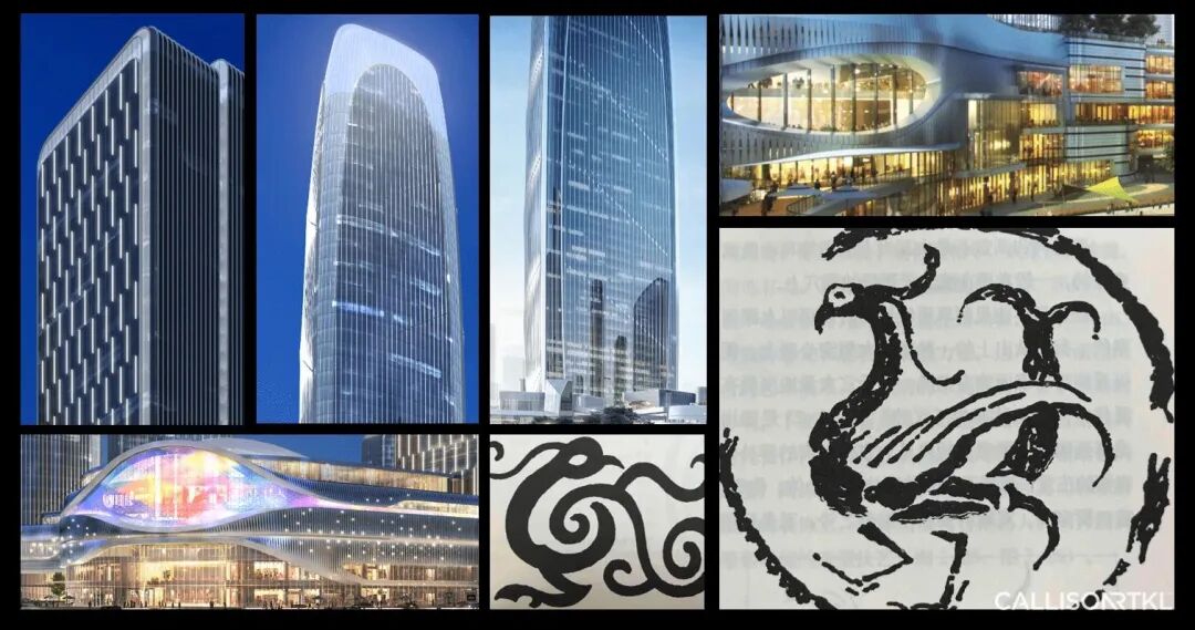 受楚文化中凤凰的启发,项目立面以“凤之羽”为概念,形体在向上蓄势升腾的同时又沿横向流畅展开,柔中有刚,刚柔并进。虚实相间的体量、相互交织的金属与玻璃、如羽毛般编织的肌理,都成了本案的视觉辨识元素。