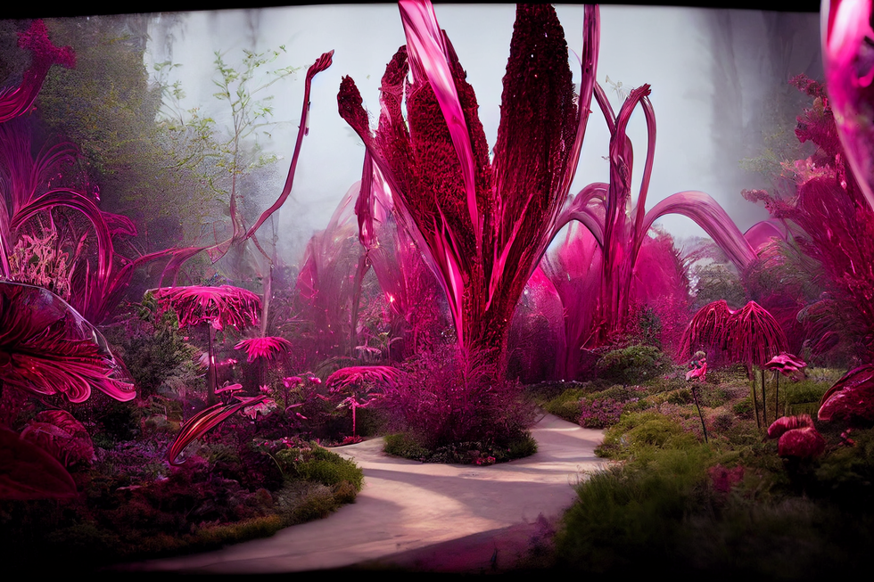 PANTONE 在 AI 艺术工具 Midjourney 和创意平台 Huge 的协助下,创造了一个探索颜色的身临其境的数字世界,审视颜色和自然以及数字世界的联系。而这个借助人工智能设计,强调非凡洋红色彩的,且与自然息息相关的生态新系统被命名为了「洋红元宇宙」。