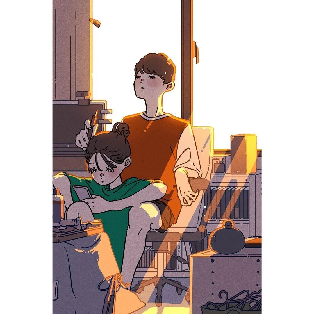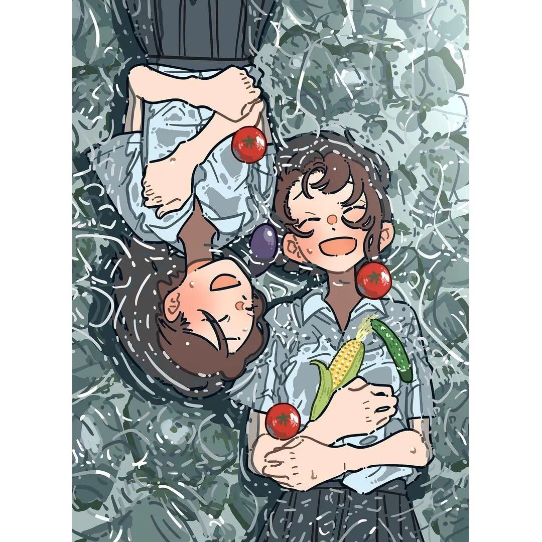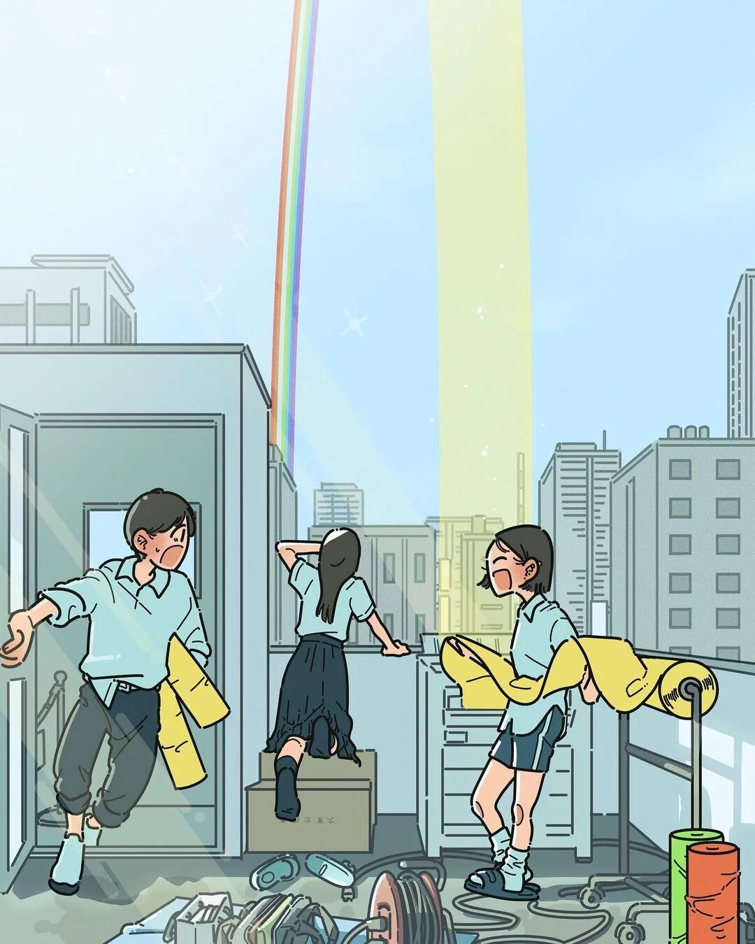 日本画师@fuuka_kobayashi ,插画以以青春为主题,简约的风格和温暖的色彩,将美好的青春刻画下来。