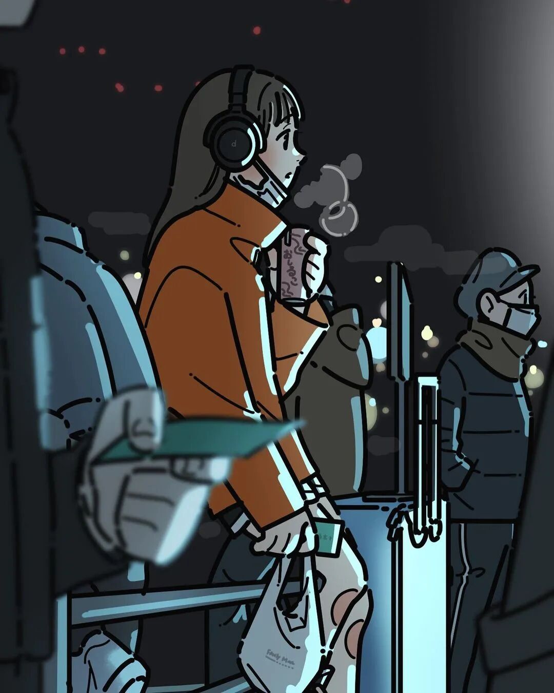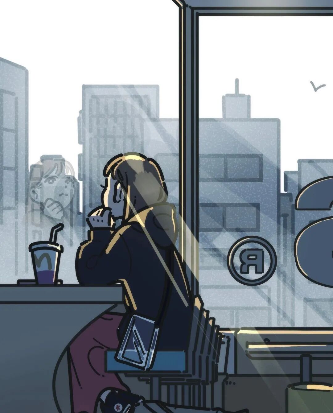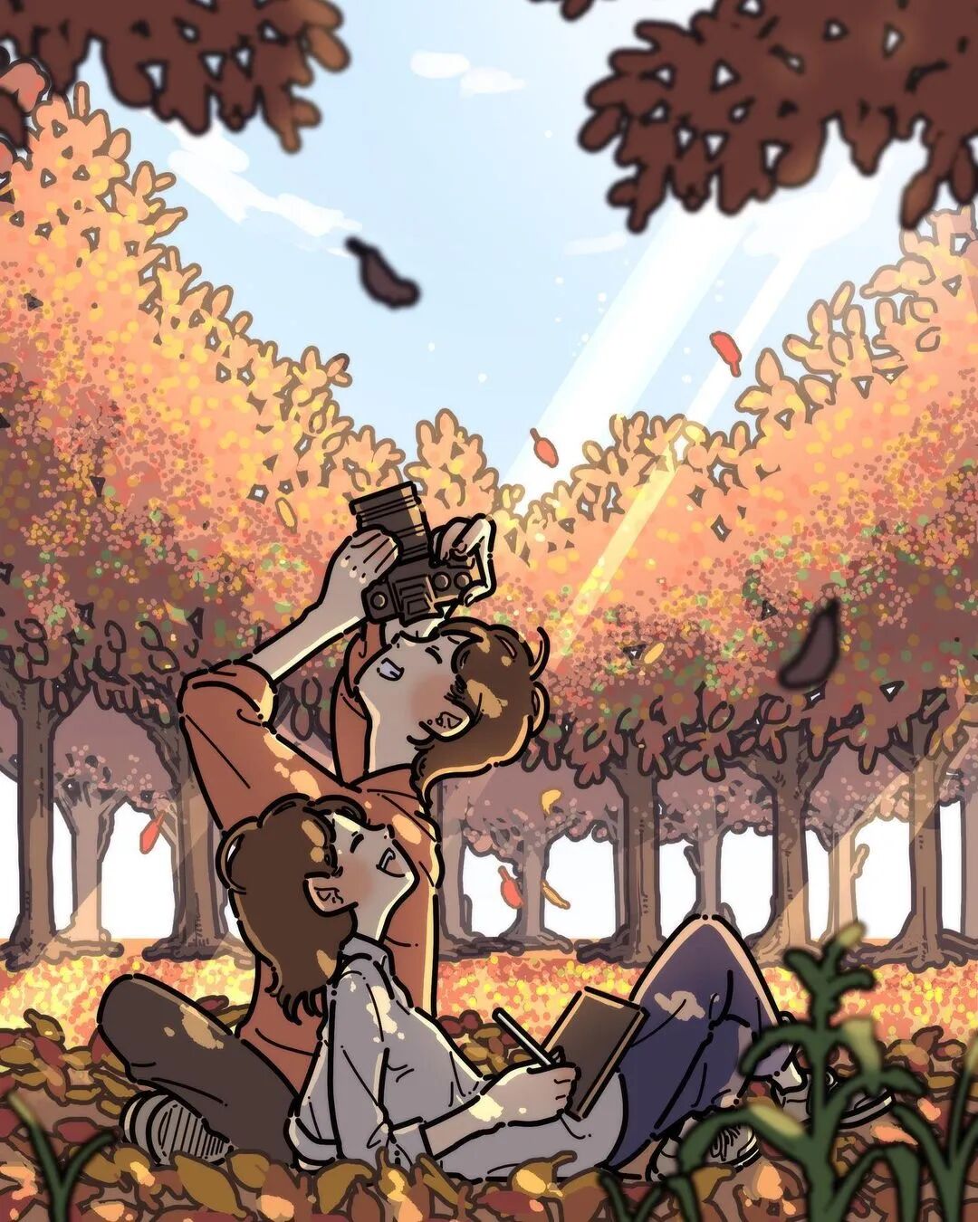 日本画师@fuuka_kobayashi ,插画以以青春为主题,简约的风格和温暖的色彩,将美好的青春刻画下来。