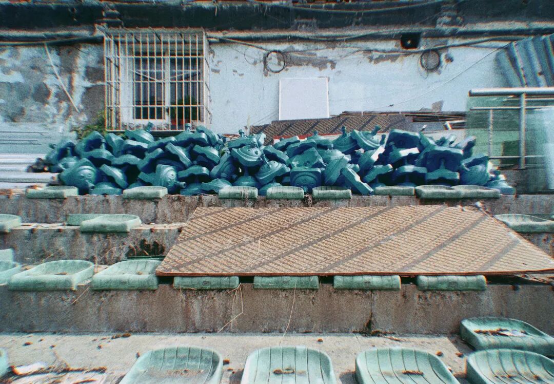 进入足球场可以闻到修剪过的清香丰盛的草叶气息,旁边的场地杂草丛生,一些荒地被开辟出来种上了青菜与瓜果。体育场逐渐与花市的空间生长在一起,这给它赋予了另一种来自民间的自发的支配力量,空间的不同形态因此而存在。