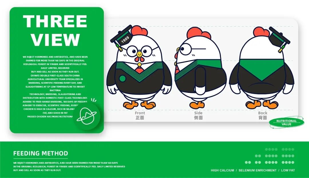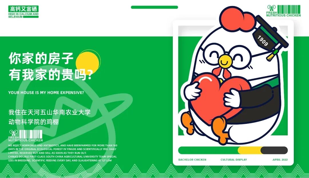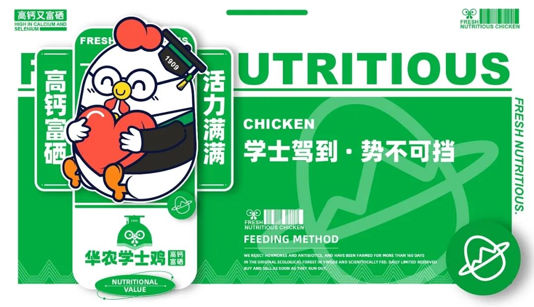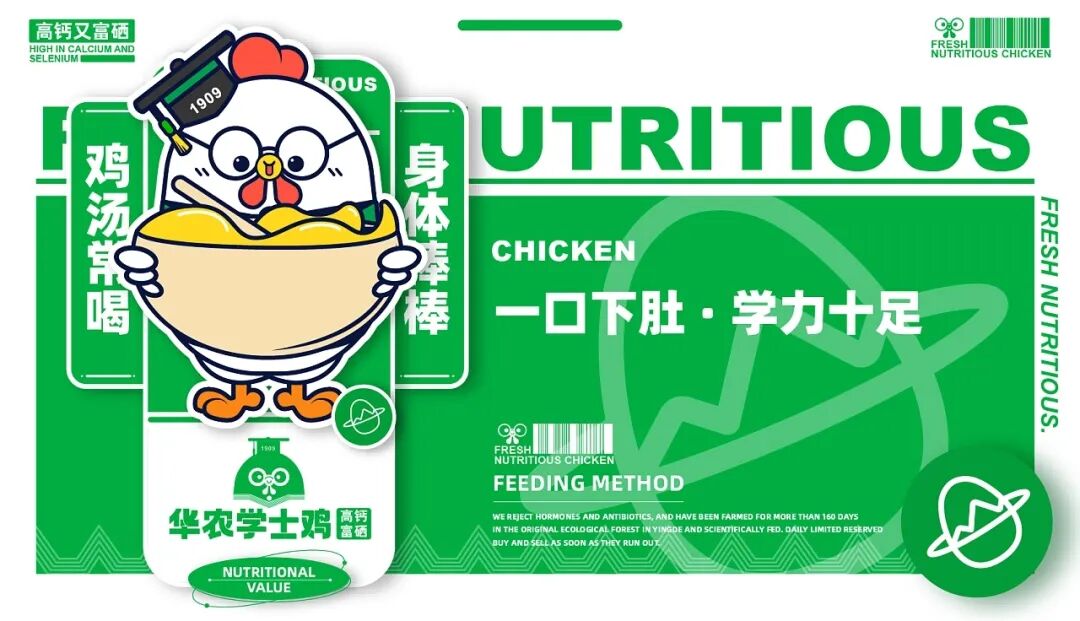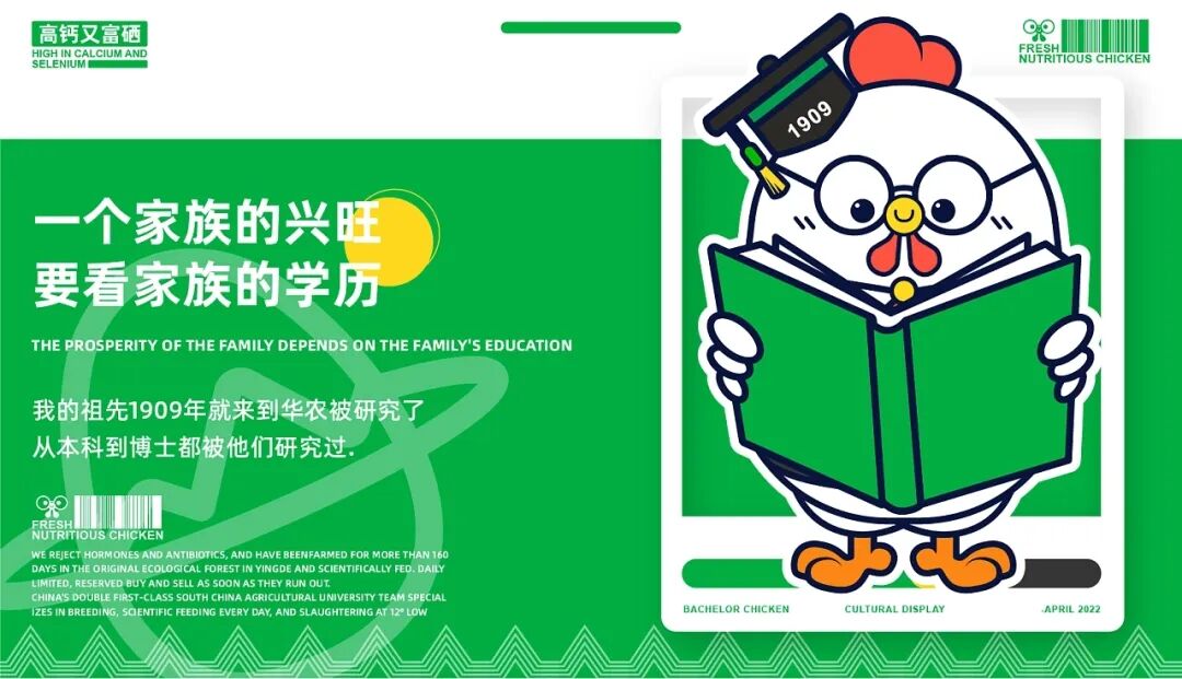 养鸡也能有这么多讲究?Bachelor Chicken-学士鸡品牌IP设计,旨在做“一只有良心的鸡” 、“一只有文化的鸡”和“一只有营养的鸡” ,并由中国双一流华高校团队专业养殖,在英德原生态竹林养殖160天以上,科学喂养,让每只学士鸡都是高钙,富硒,低脂,比普通的鸡更有营养价值。
